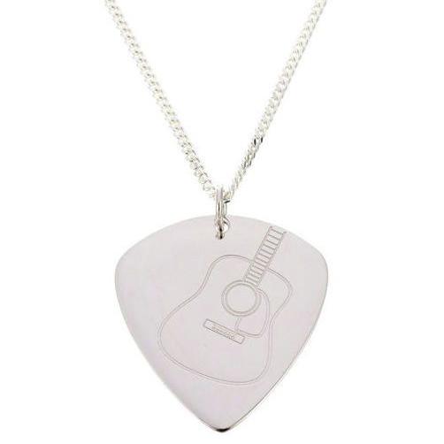 Silber Plektrum-Anhänger mit Silberkette Motiv: Westerngitarre Motiv beidseitig gelasert mit 45 cm Panzerkette aus 925er Silber Plektrum-Größe: 29 mm x 26 mm in attraktiver Geschenkbox
