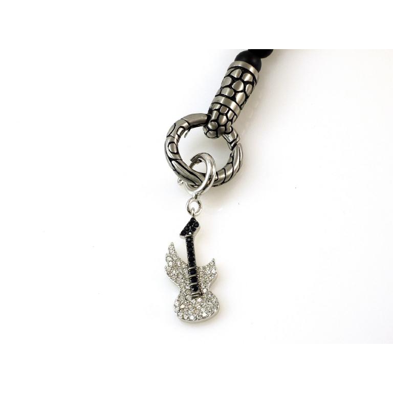 Jen Majura agate chain with stainless steel designs - silver guitar pendant - with CZ cubic circonium stones in white and black - size 40mm by 10mm, lengh of the chain 65 cm plus pendant extention 80 mm - pendant with signature at the backside of the pendant - antik look, material 925 sterling silver