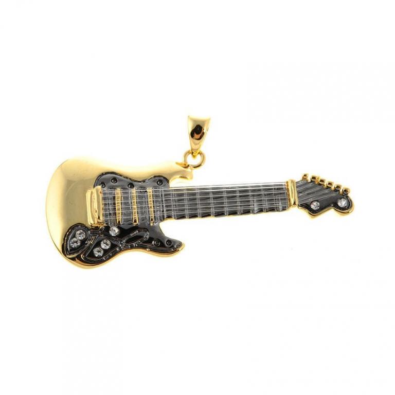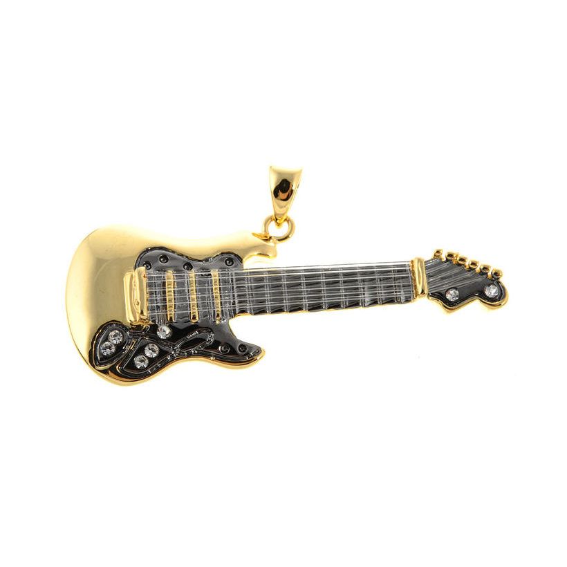 Schmuckanhänger "E-Gitarre" mit Saiten und Steinen vergoldet und hochwertig rhodiniert sehr feine Verarbeitung Länge: ca. 41 mm Breite: ca. 16 mm
