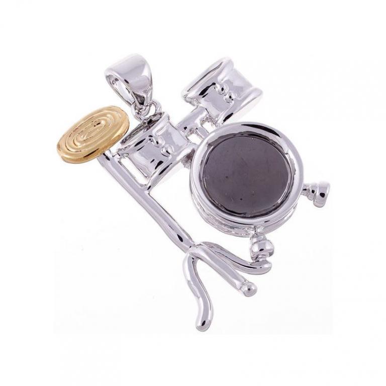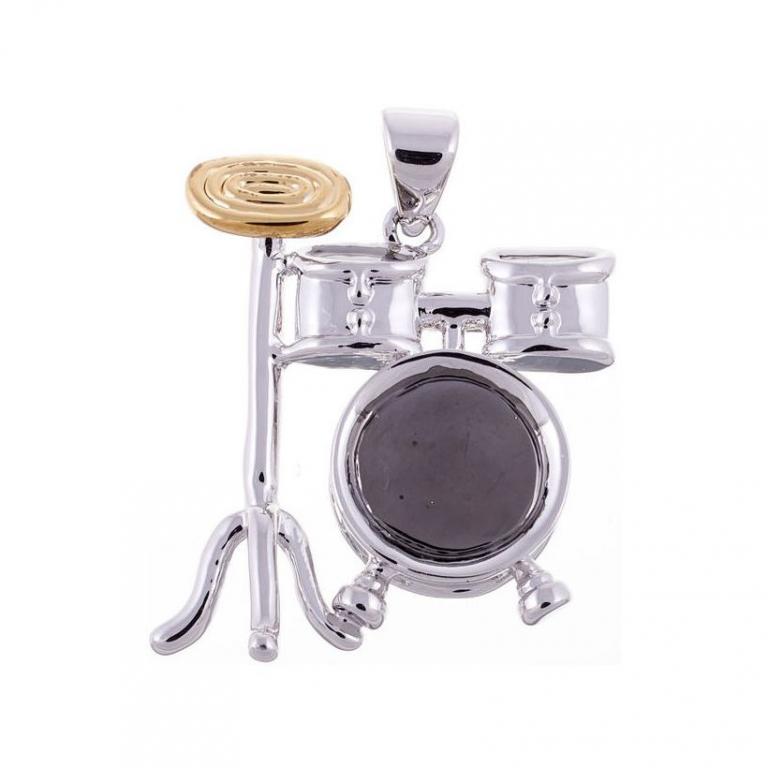 Anhänger Schlagzeug versilbert, teilvergoldet und rhodiniert feine Verarbeitung Größe (L x B): ca. 25 x 21 mm