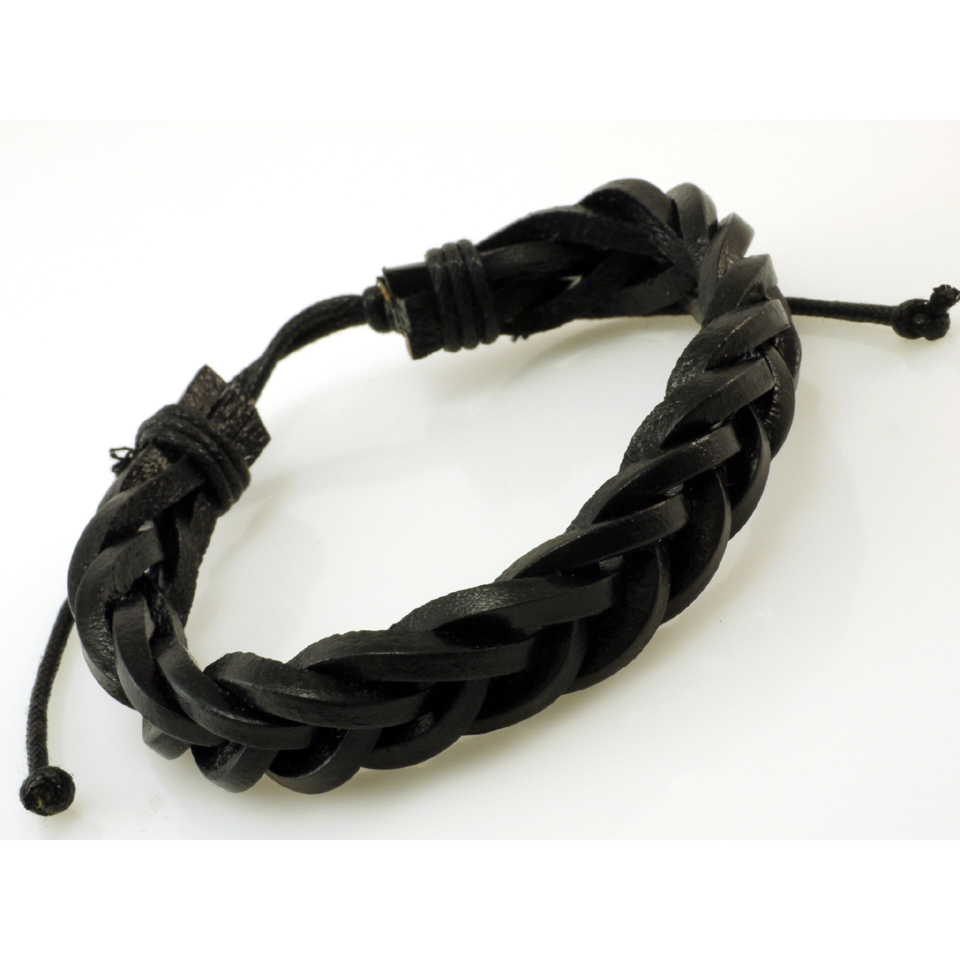 schwarzes Lederarmband mit Stoffband Verschluß - Breite 12,5 mm - Länge 21 cm