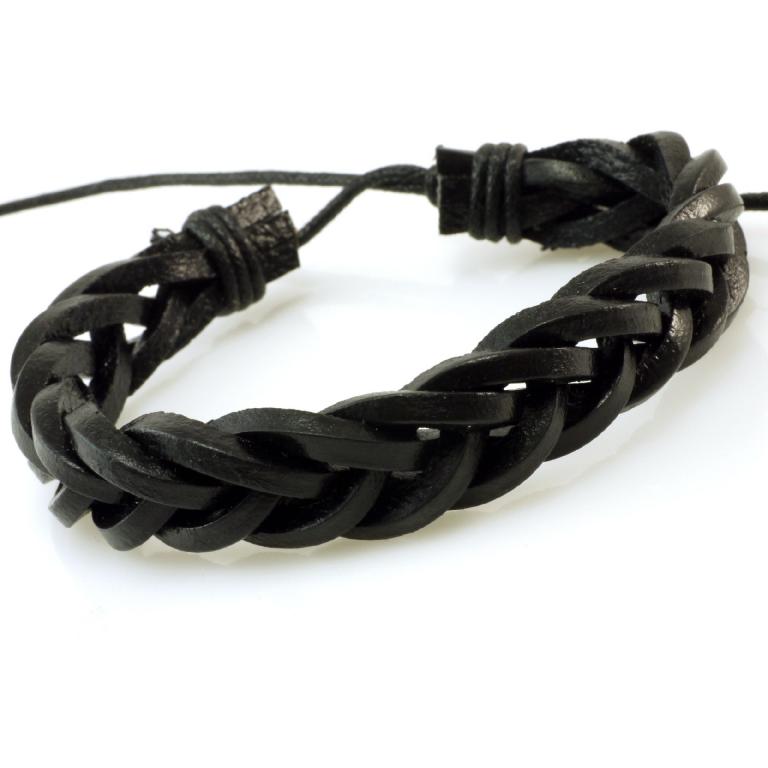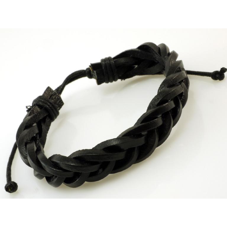 black leather and cotton bracelet 12,5 mm wide, 21 cm lengh
