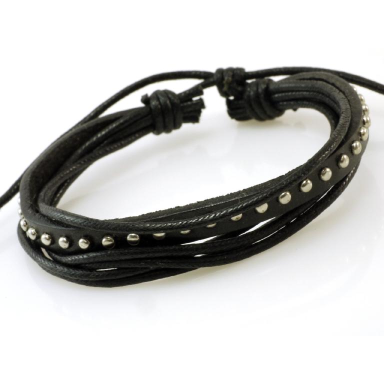 blackleather and cotton bracelet 10,5 mm wide, 21 cm lengh