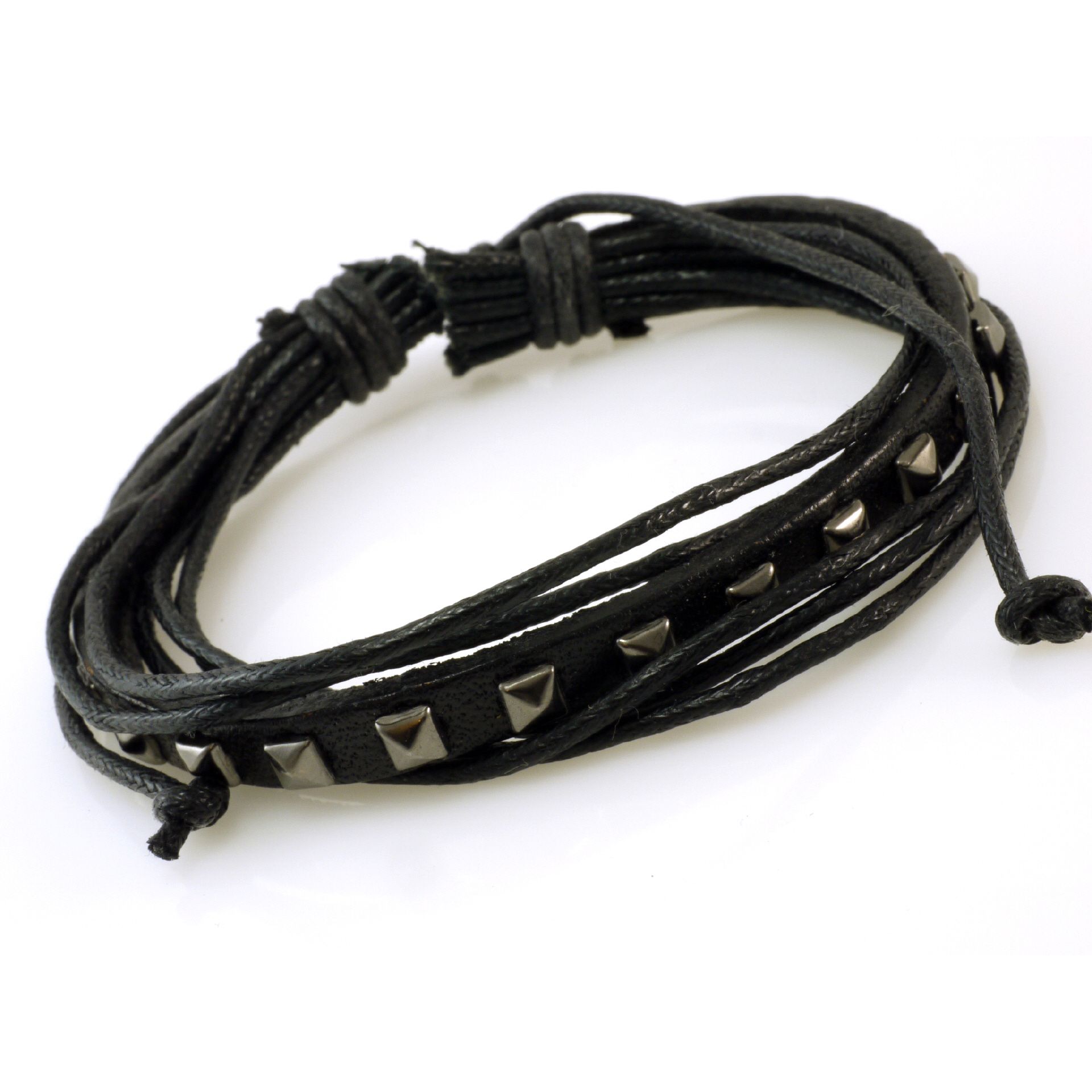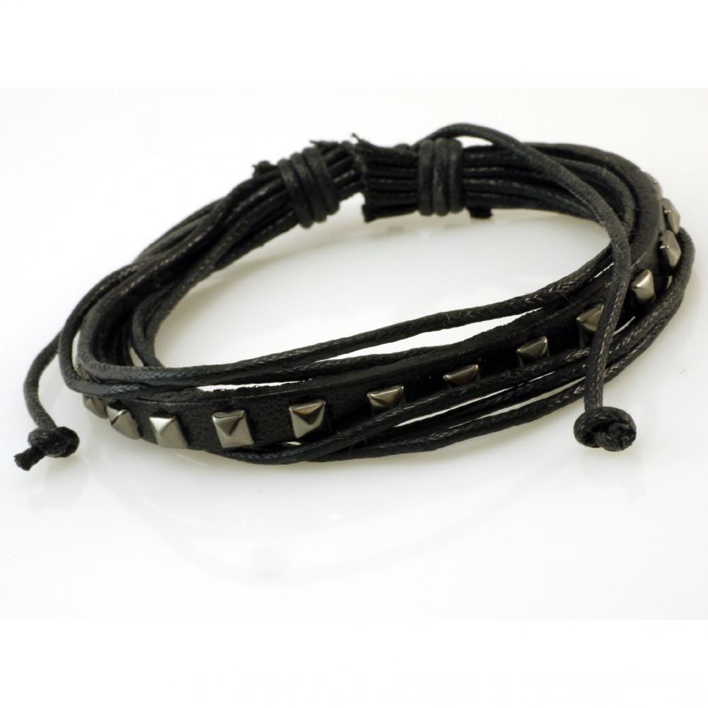 blackleather and cotton bracelet , with square metal design, 10,5 mm wide, 21 cm lengh