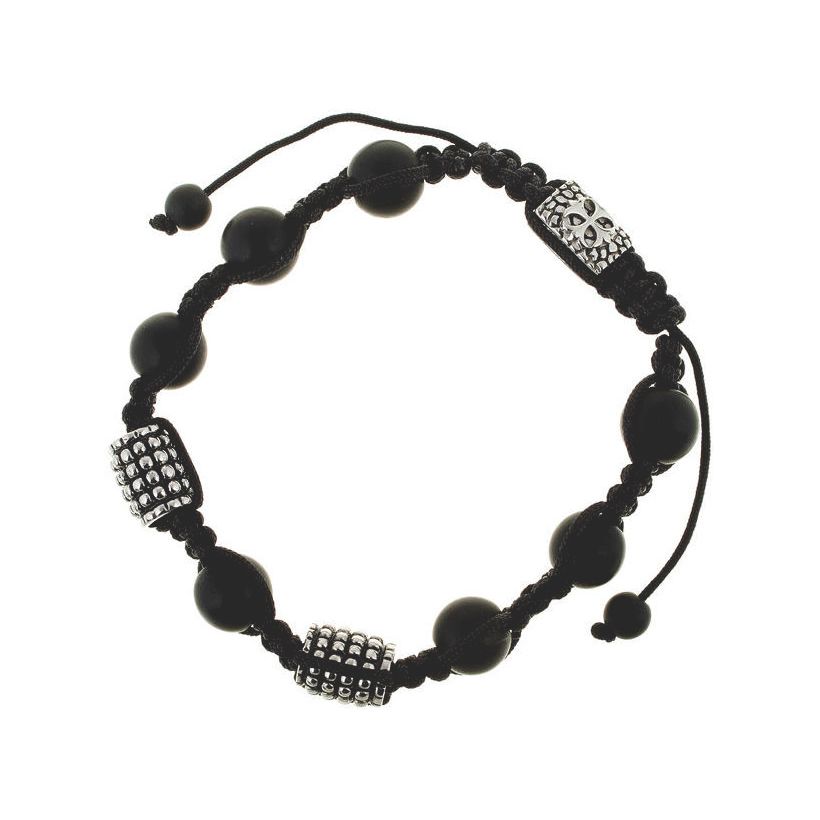 Armband mit Achatstein-Kugeln Durchmesser: 8,5 mm mit Edelstahl Designelementen alle Kugeln und Edelstahl Elemente sind eingeflochten die Verschlußbänder sind verschiebbar, daher flexible Größe