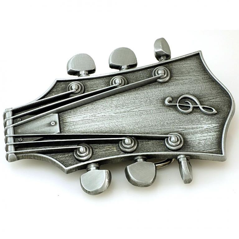 Gürtelschließe Gitarre Kopfplatte, Hartmetallguss, Größe der Schließe 95 mm x 68 mm, für Gürtel bis 40mm Breite