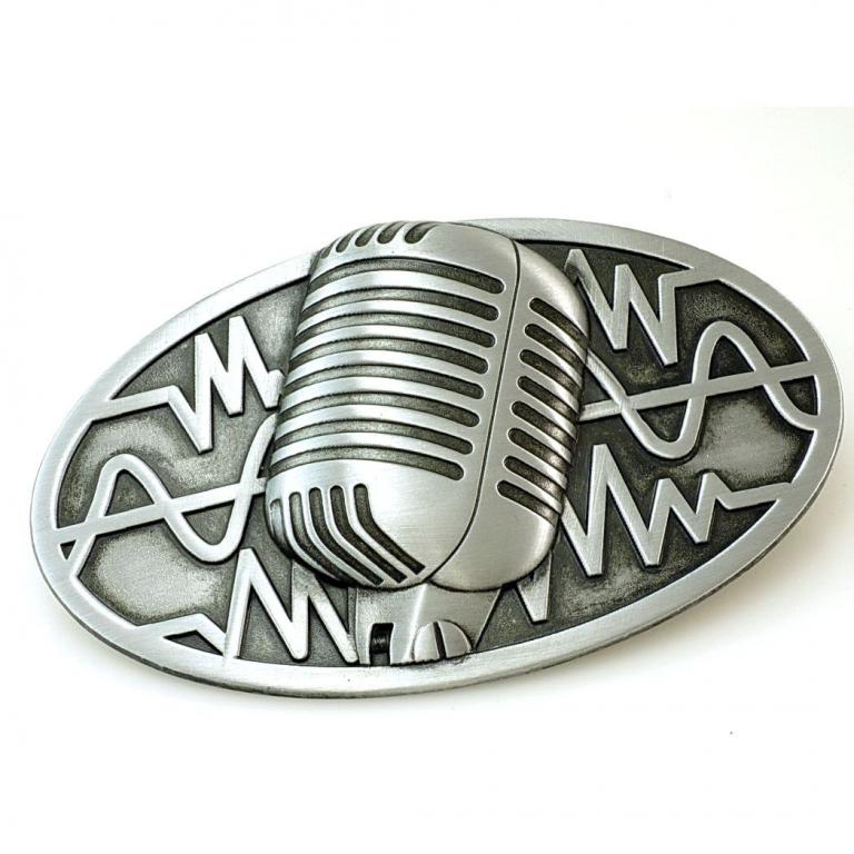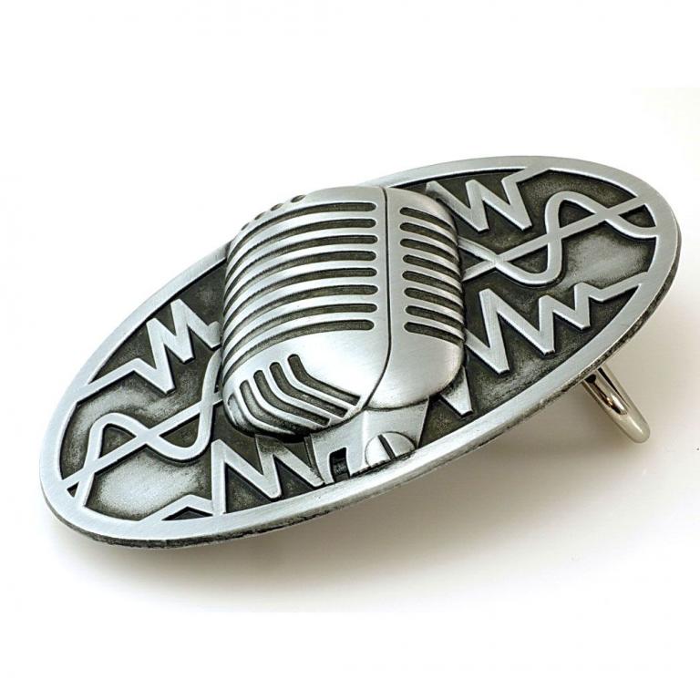 Gürtelschnalle Mikrofon, Hartmetallguss, Größe der Schließe 97 mm x 58 mm, für Gürtel bis 40mm Breite