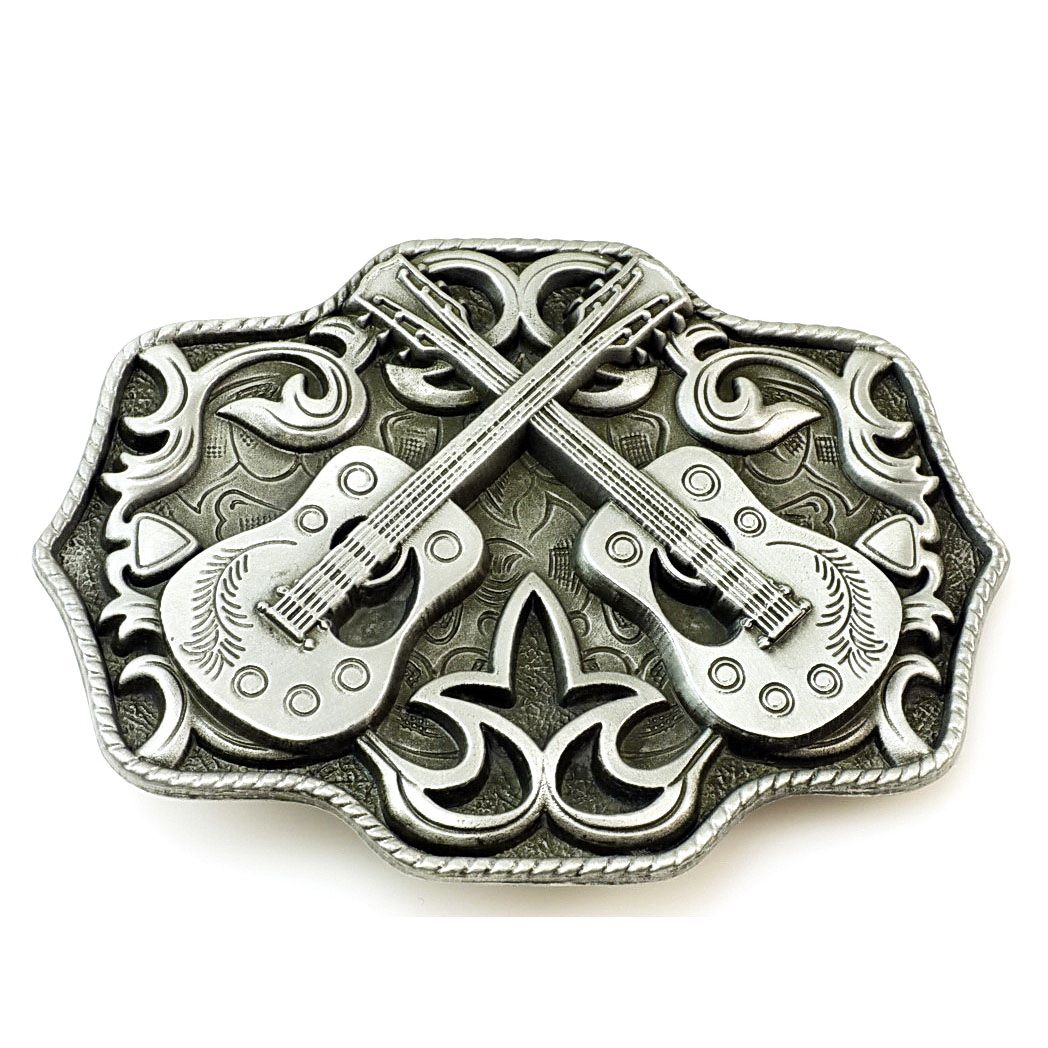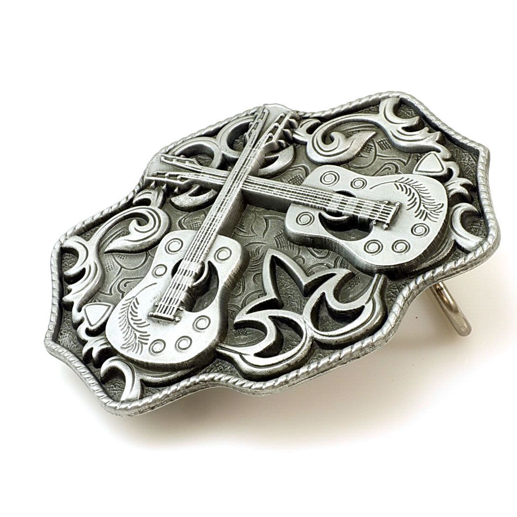 Gürtelschnalle Western Guitars, Hartmetallguss, Größe der Schließe 92 mm x 67 mm, für Gürtel bis 40mm Breite