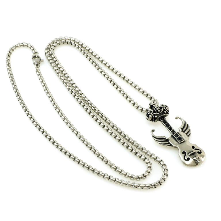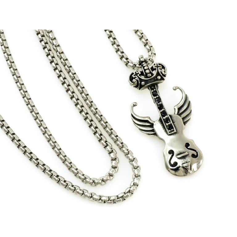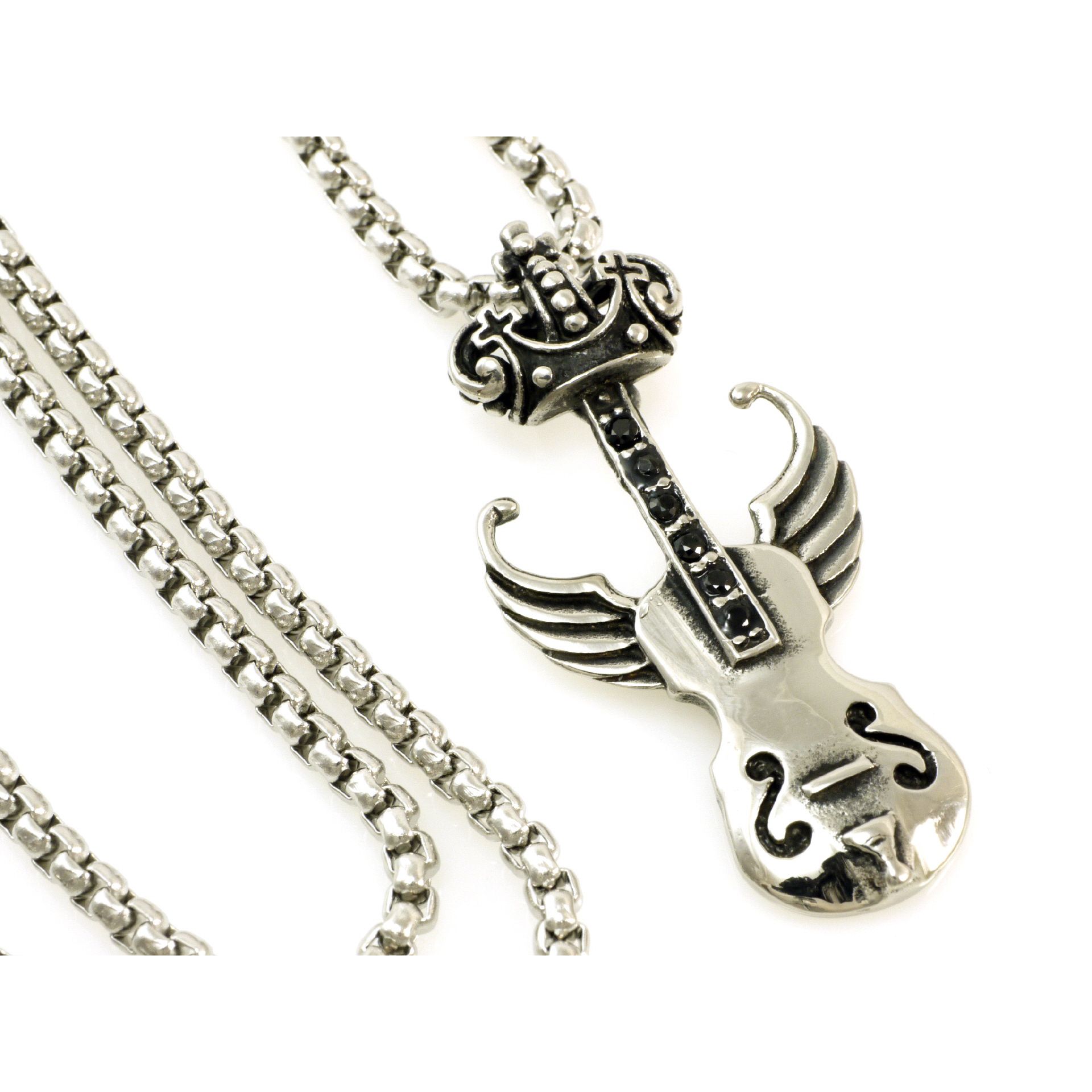 Edelstahlkette Violine and Wings with Crown Grösse des Anhängers 45 mm x 22 mm mit Venezia Edelstahlkette 3mm Stärke, 70 cm Länge