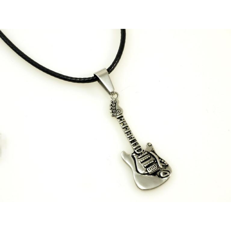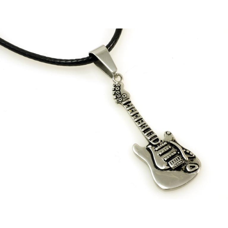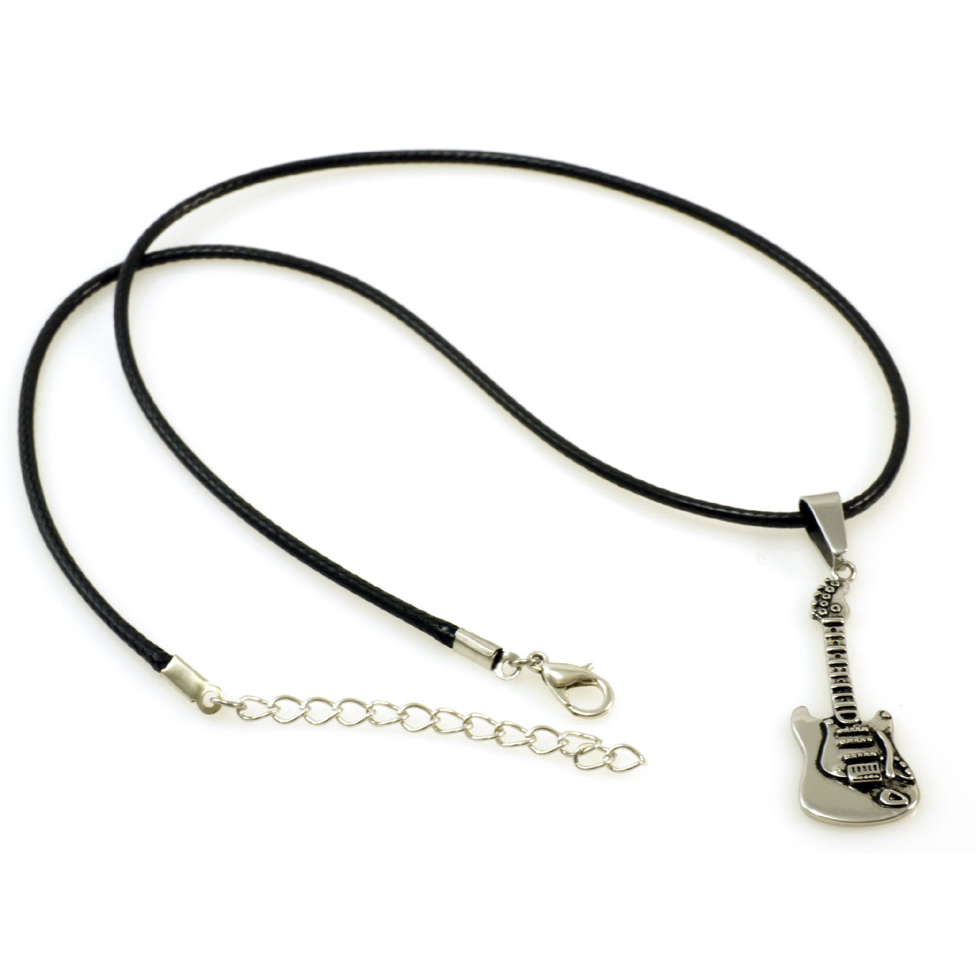 E Gitarre aus Edelstahl mit gewachster Stoffkette Größe 50mm x 14 mm Stoffband 2mm Stärke, 50cm Länge mit Karabiner Verschluss mit Verlängerungskette