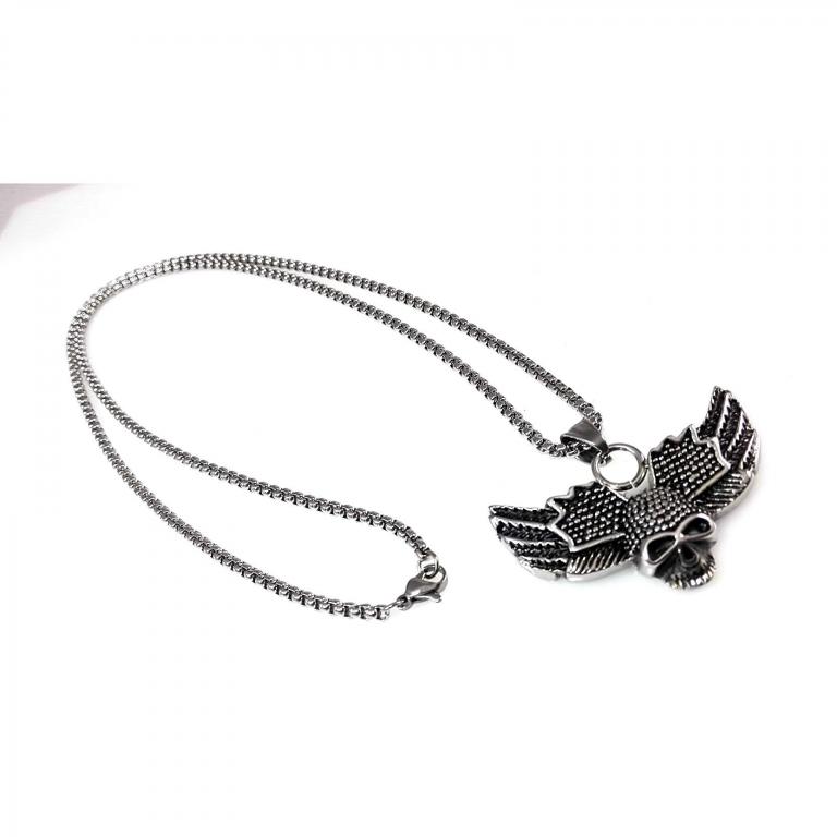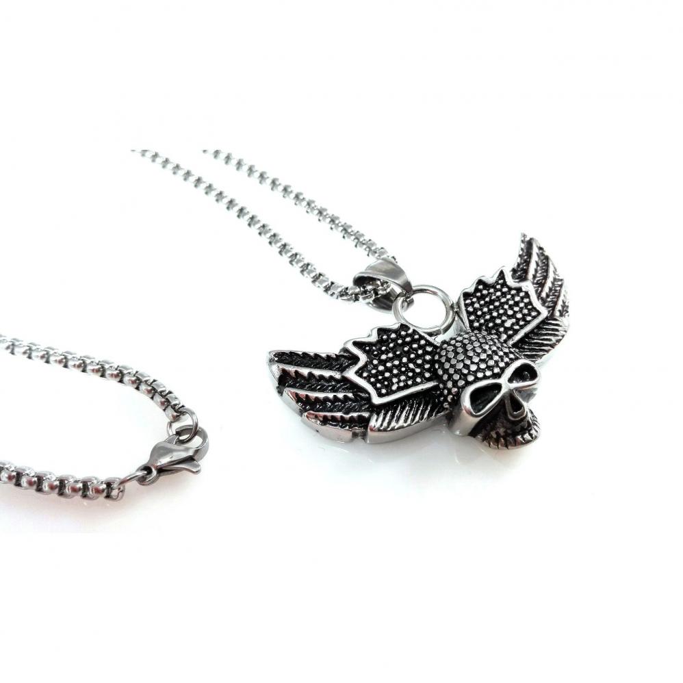 Edelstahlkette mit Anhänger, Skull mit Flügeln Design, Anhänger Grösse 35 mm x 47 mm, Venezianer Edelstahlkette 70cm Länge 3 mm Stärke