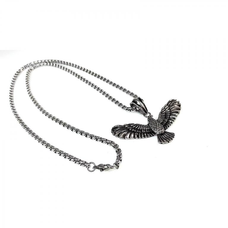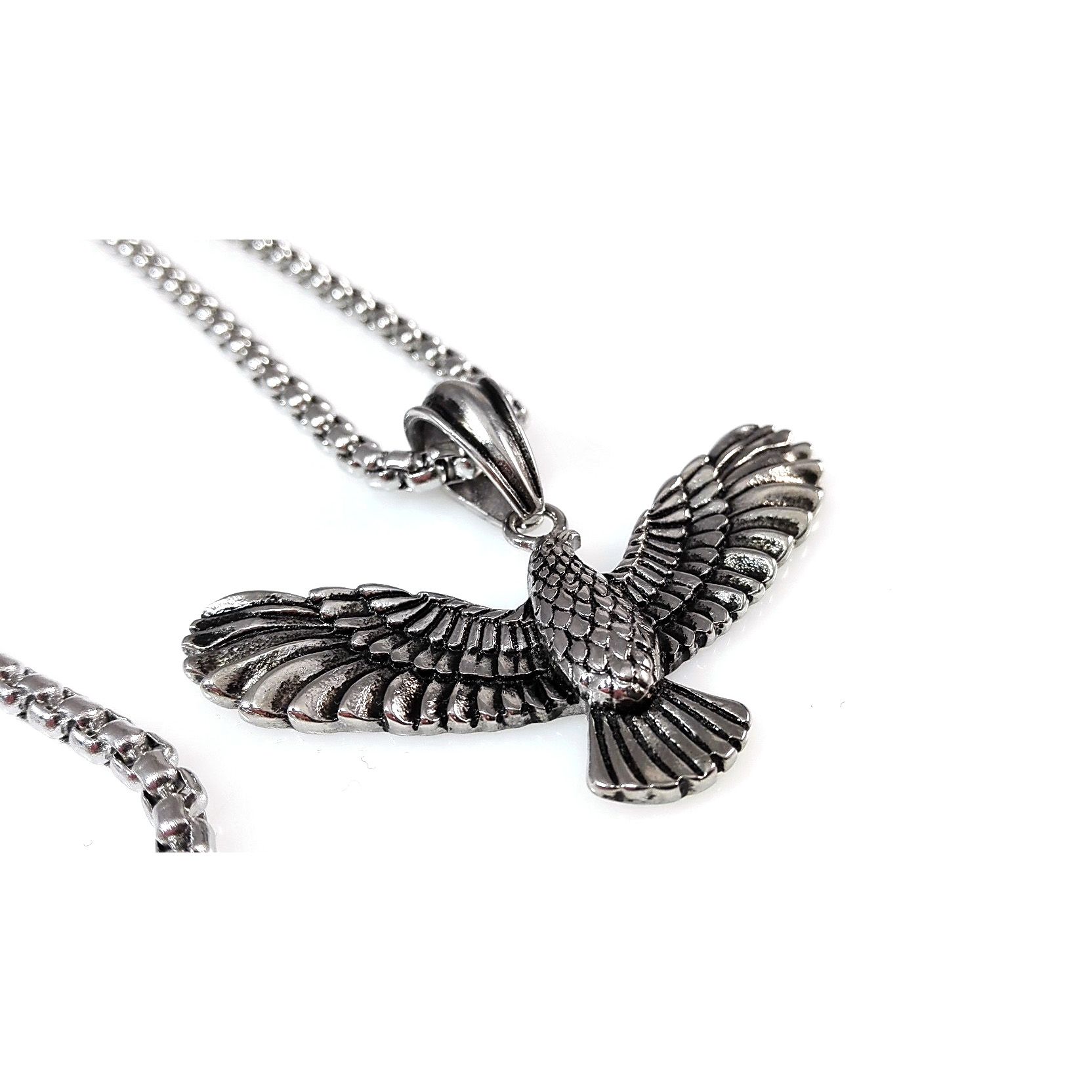 Edelstahlkette big Eagle, mit großem Steinadler Anhänger aus Edelstahl, Grösse des Anhängers 42 mm x 57 mm, massive Venezianer Edelstahlkette 70 cm Länge, 4 mm Stärke