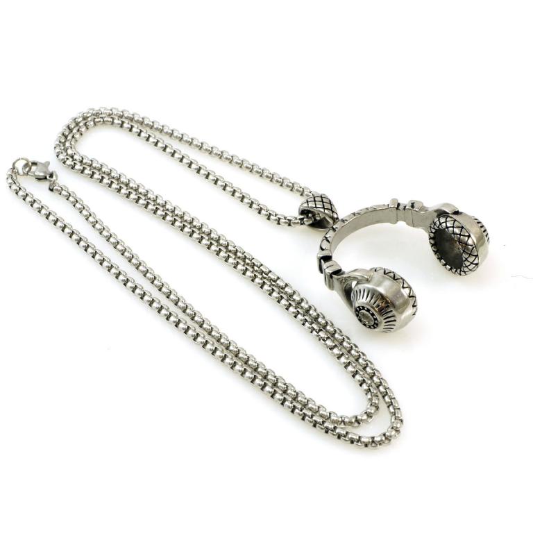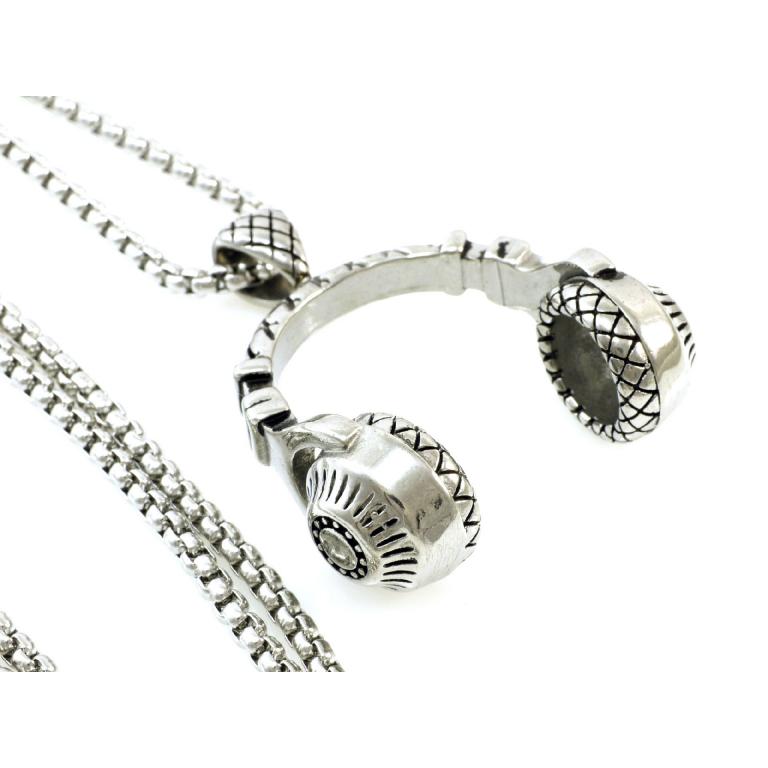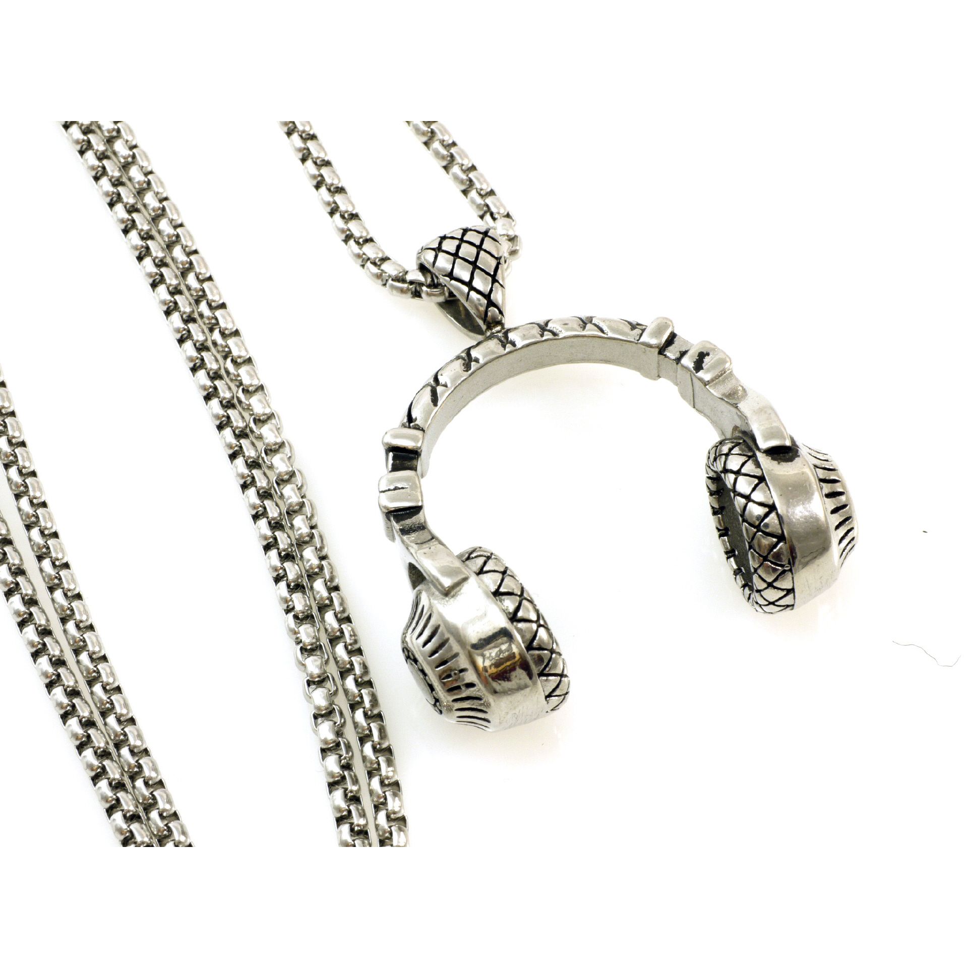 Edelstahlkette mit großem Kopfhörer Anhänger , Anhänger Grösse 48 mm x 40 mm, Venezianer Edelstahlkette 70cm Länge , 3 mm Stärke , mit Karabiner Verschluss