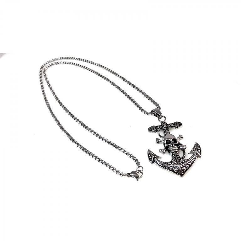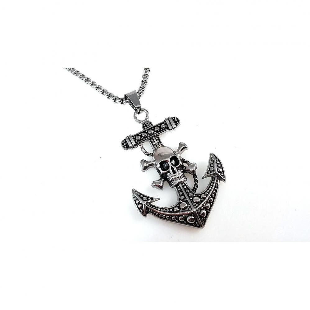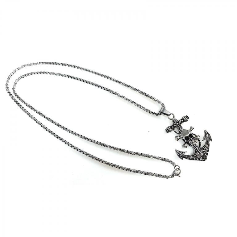 Edelstahlkette mit großem Skull mit Anker Anhänger , Anhänger Grösse 58 mm x 33 mm, runde Venezianer Edelstahlkette 70cm Länge , 3 mm Stärke , mit Karabiner Verschluss