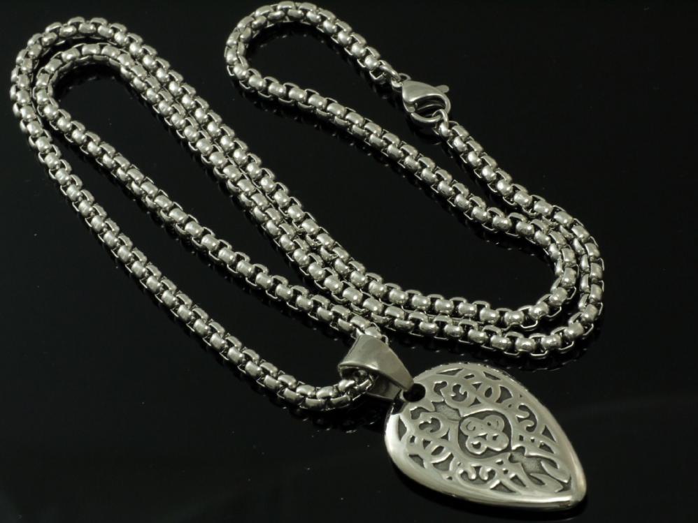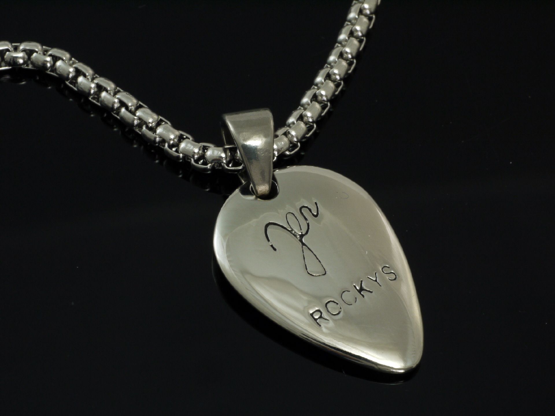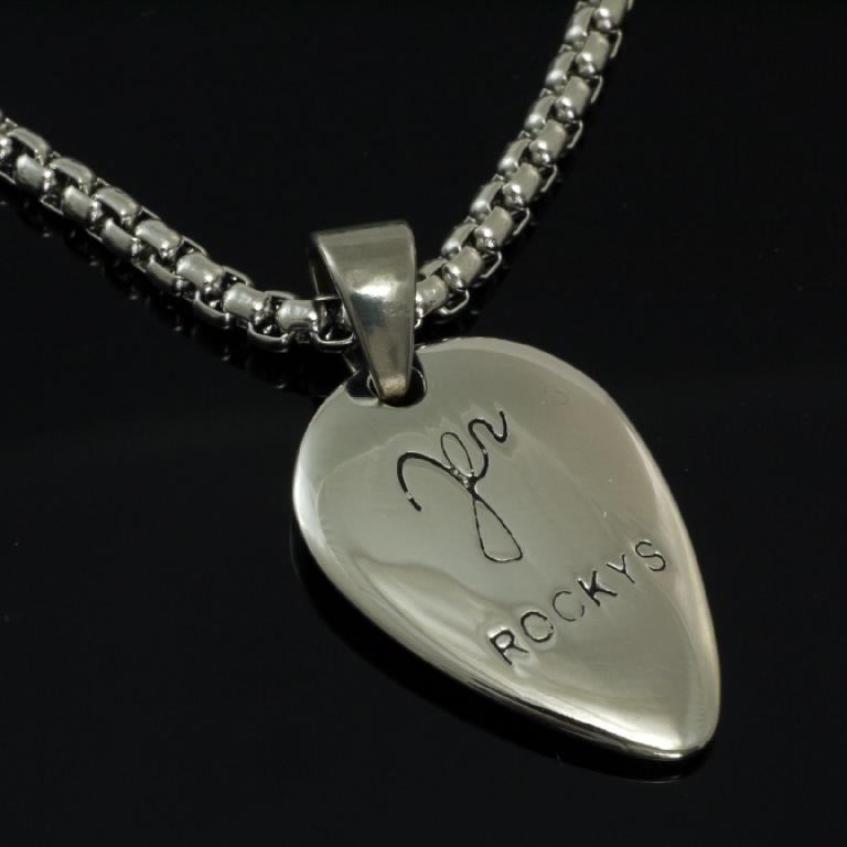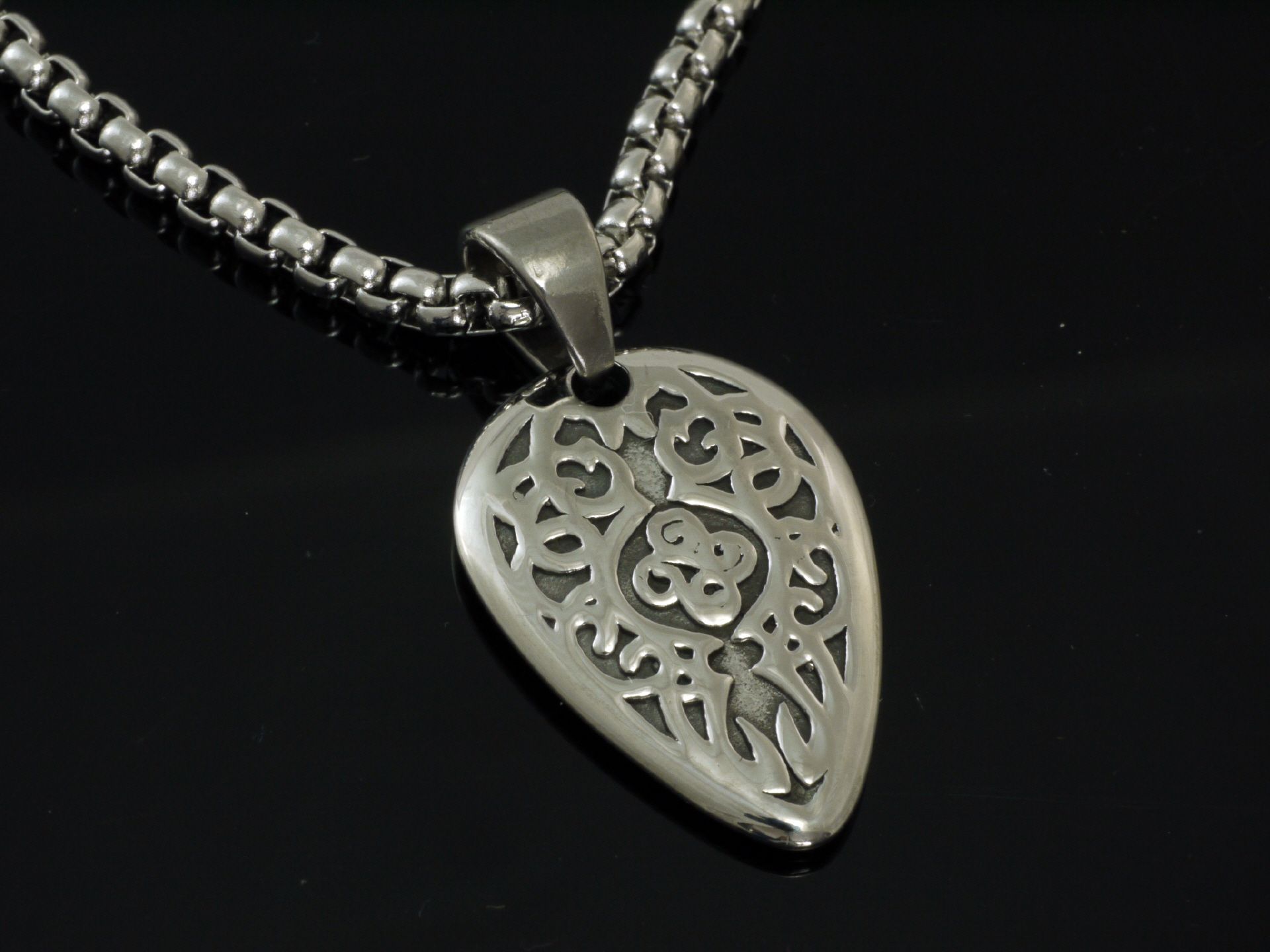 Jen Majura Plektrum Edelstahl Anhänger Grösse 30mm Länge 17 mm Breite mit 50cm langer Edelstahlkette - auf Rückseite mit Signatur von Jen - Edelstahl Anhänger in Antik Optik