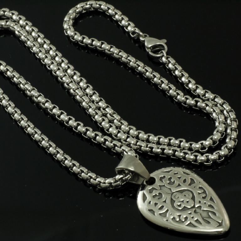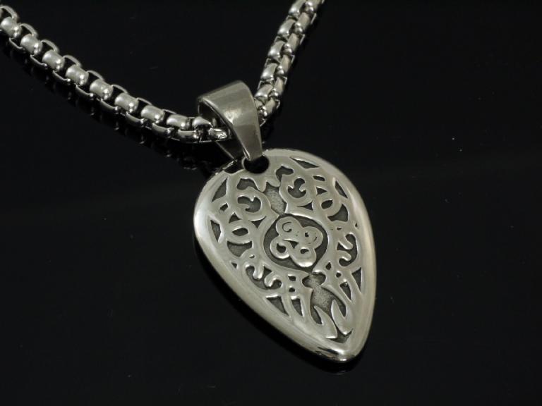 Jen Majura stainless steel pick pendant - size 30mm by 17 mm comes with 50 cm stainless steel chain - with signature at the backside of the pendant - antik look, material stainless steel