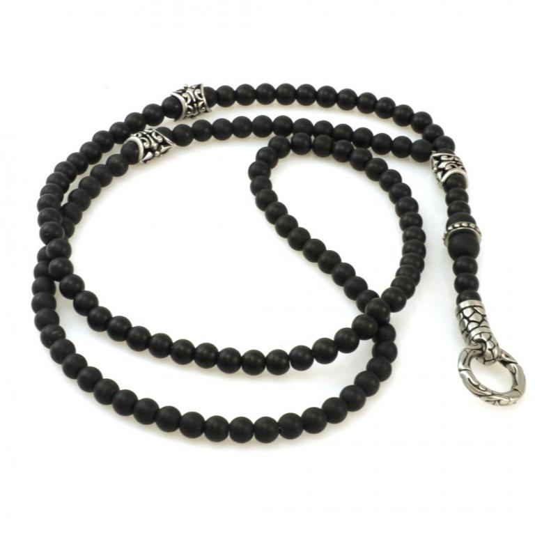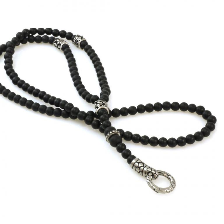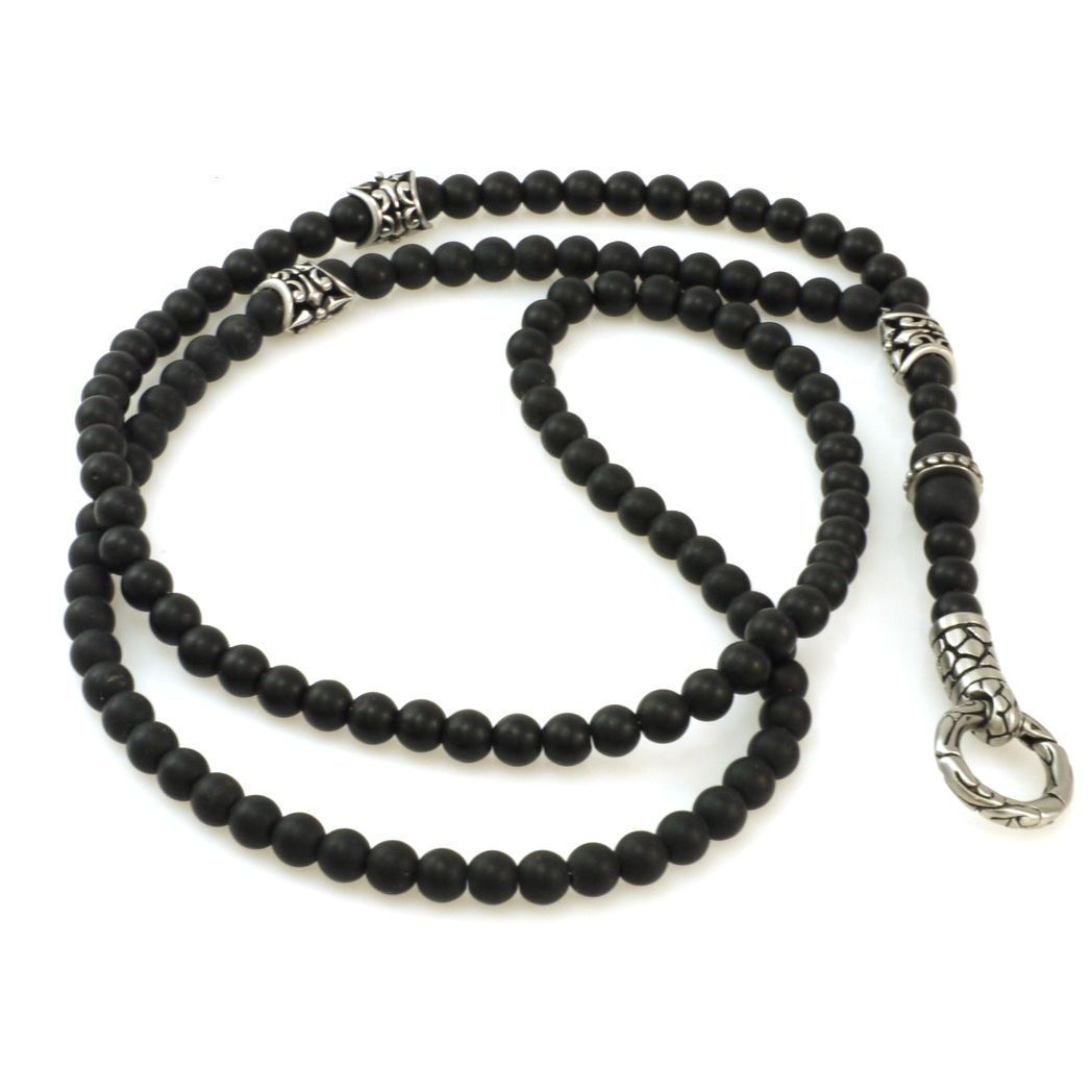 Achat Kugelkette mit matten Achatkugeln, mit 4 Edelstahl Design Elelementen und einem großen Ring der sich nach Innen öffnen läßt, zum einhängen für Anhänger, alle Edelstahl Elemente mattiert, Länge der Kette 65 cm, plus Anhänger 80 mm Länge , Top Qualität