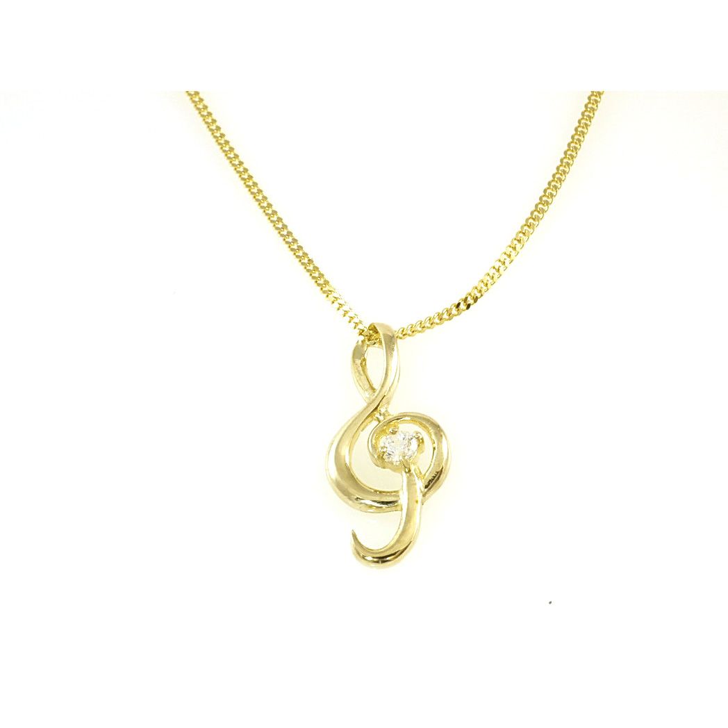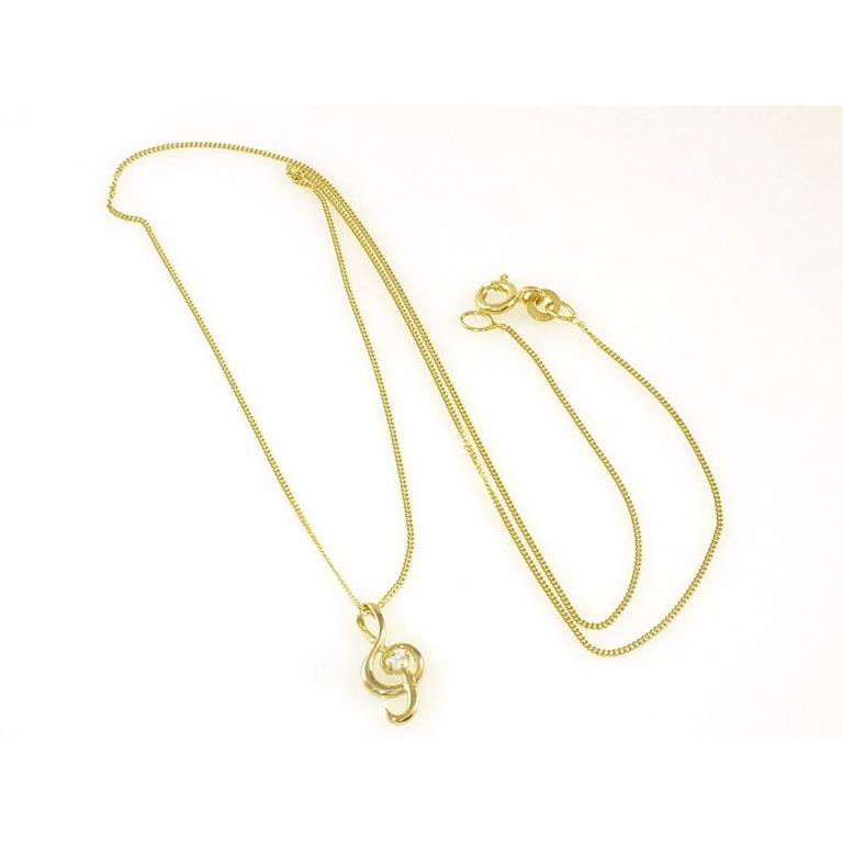 Gold Notenschlüssel mit Zirkonia Stein , mit Goldkette, beides aus 333 / 8 Karat Gelbgold, gestempelt mit 333, feine Panzerkette 0,9 mm Stärke