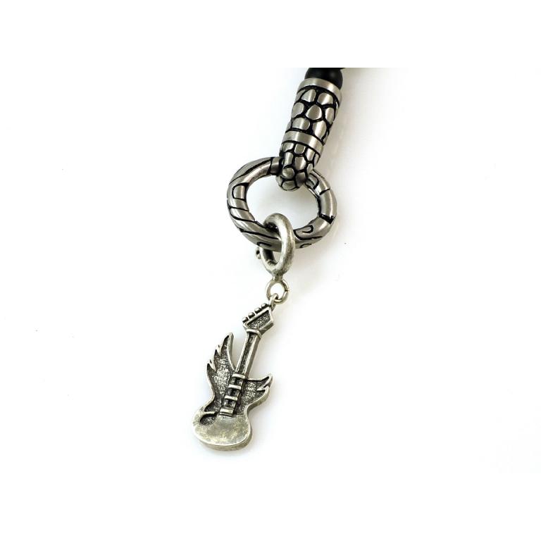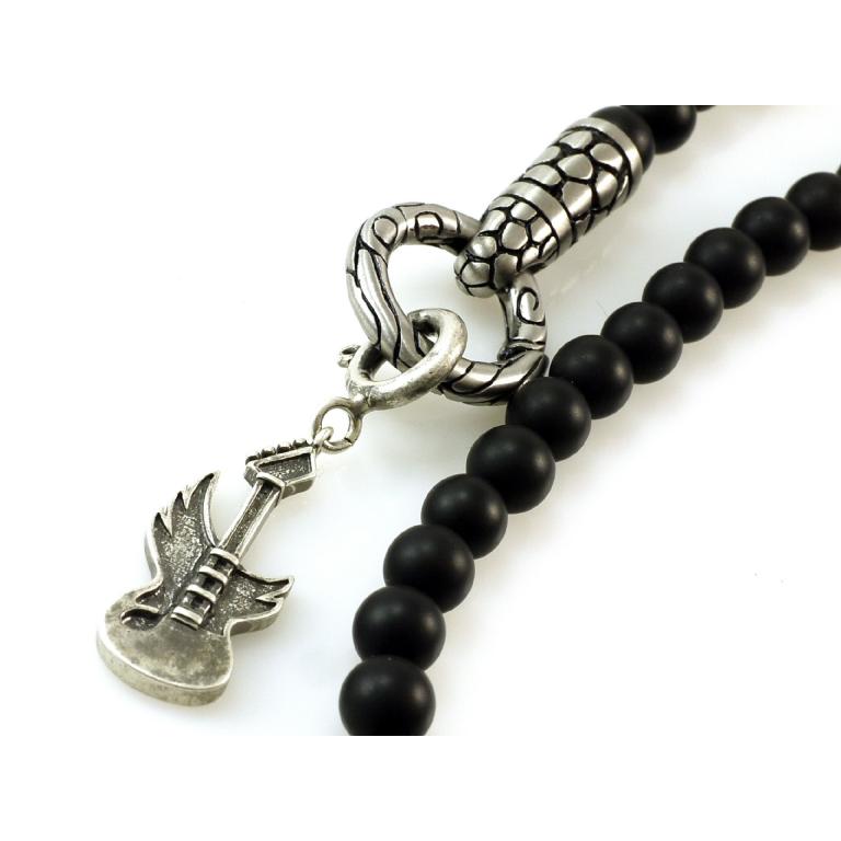Jen Majura agate chain with stainless steel designs - silver guitar pendant - size 40mm by 10mm, lengh of the chain 65 cm plus pendant extention 80 mm - pendant with signature at the backside of the pendant - antik look, material 925 sterling silver