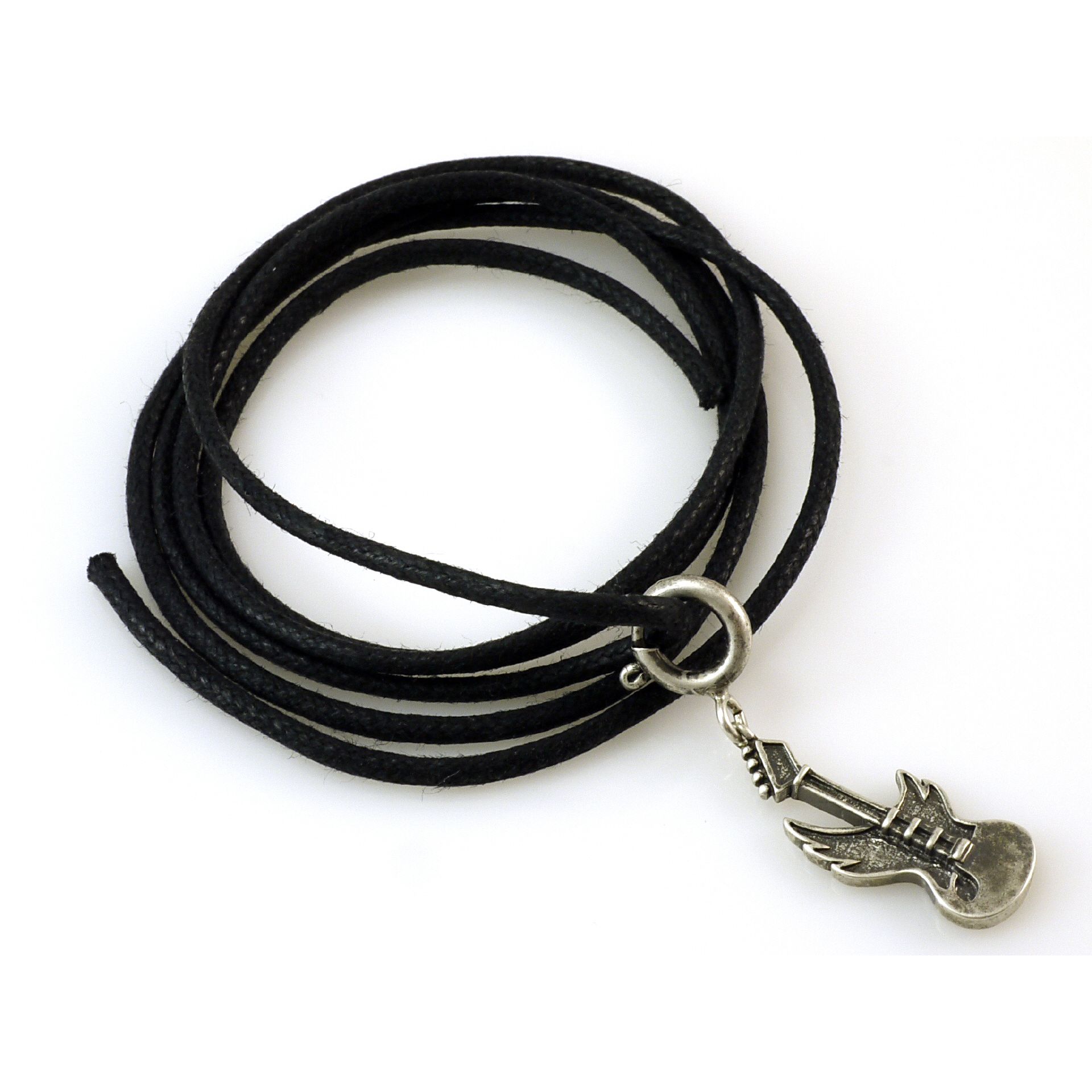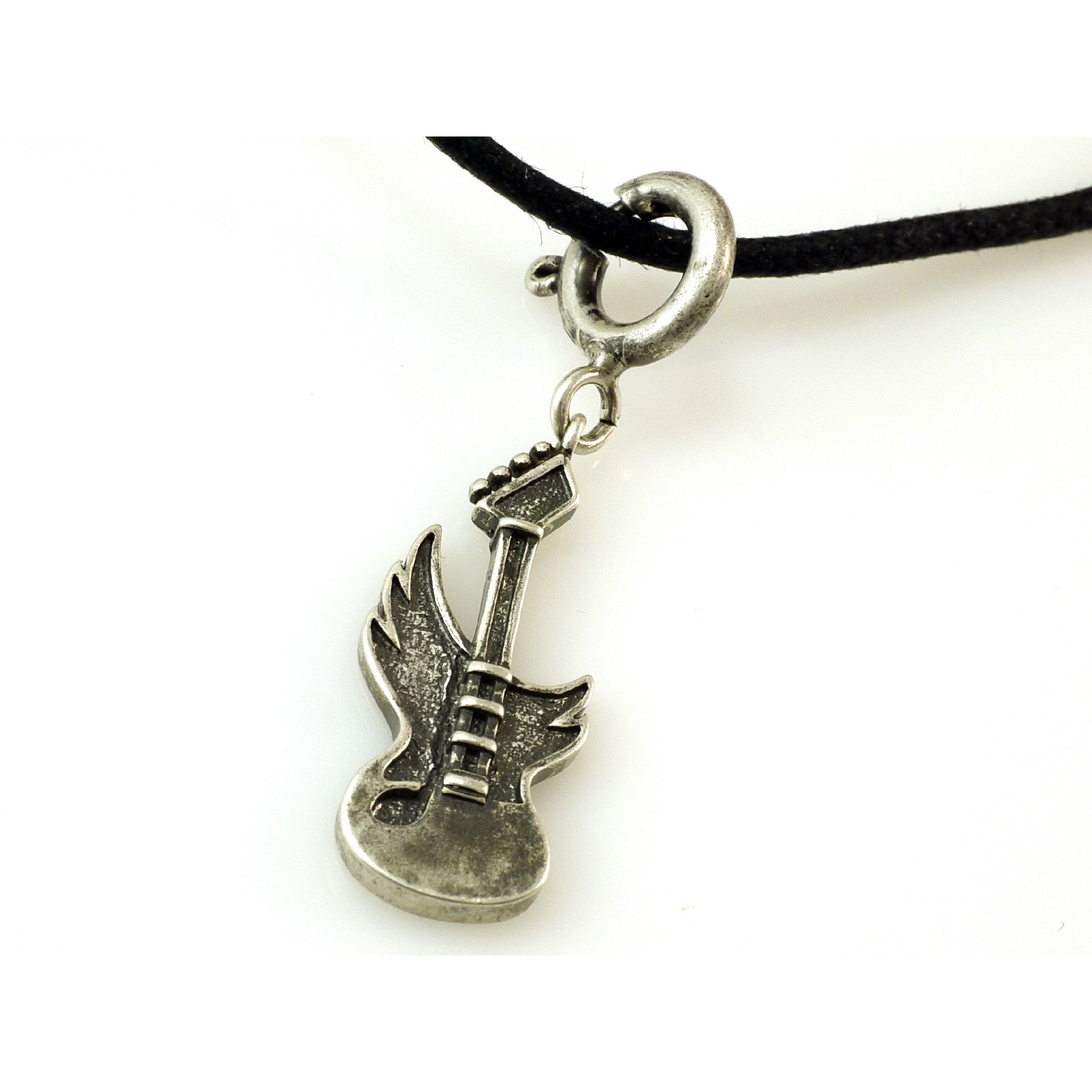Jen Majura Silber Gitarren Anhänger - Grösse 40mm Länge 10 mm Breite - mit 80cm langem gewachstem Stoffband - auf Rückseite mit Signatur von Jen - Silber Anhänger in Antik Optik