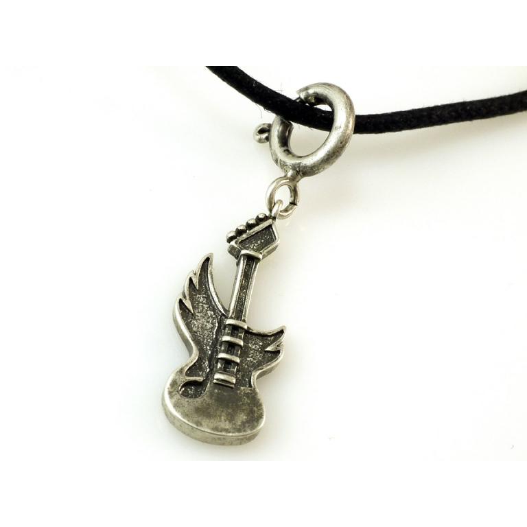 Jen Majura silver guitar pendant - size 40mm by 10mm, comes with 80 cm cotton chain - with signature at the backside of the pendant - antik look, material 925 sterling silver