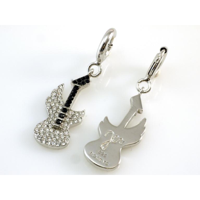 Jen Majura silver guitar pendant - with CZ cubic circonium stones in white and black - size 40mm by 10mm, comes with 80 cm cotton chain - with signature at the backside of the pendant - antik look, material 925 sterling silver