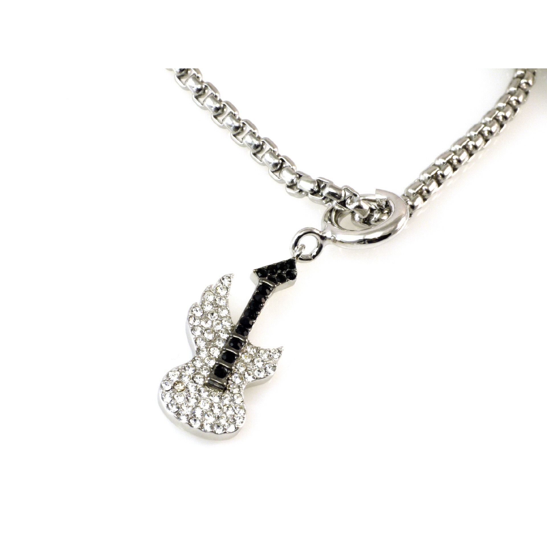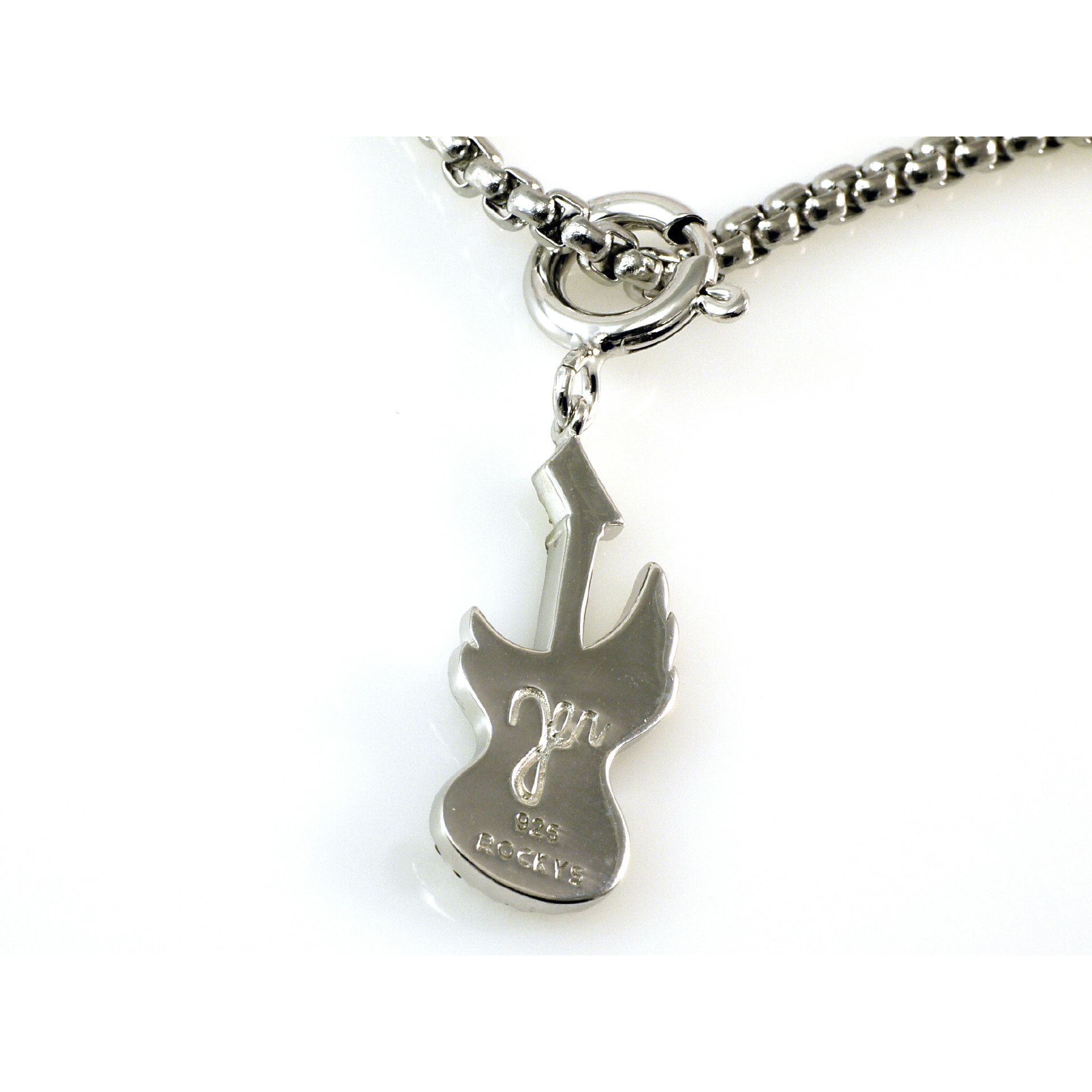 Jen Majura silver guitar pendant - with CZ cubic circonium stones in white and black - pendant size 40mm by 10mm, comes with 50 cm stainless steel chain - with signature at the backside of the pendant - material 925 sterling silver
