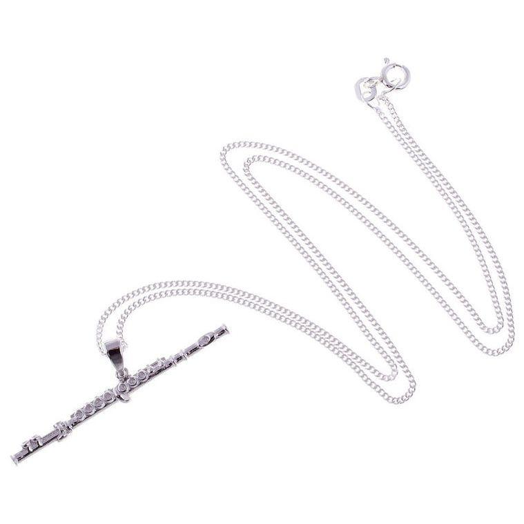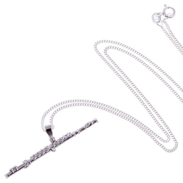 Querflöte Anhänger mit Kette 925 Silber Modell: Querflöte 925 Sterling Silber mit Geschenkbox Größe Anhänger: 41 x 3 mm Silber Panzerkette: 1,2 mm Stärke, 45 cm Länge