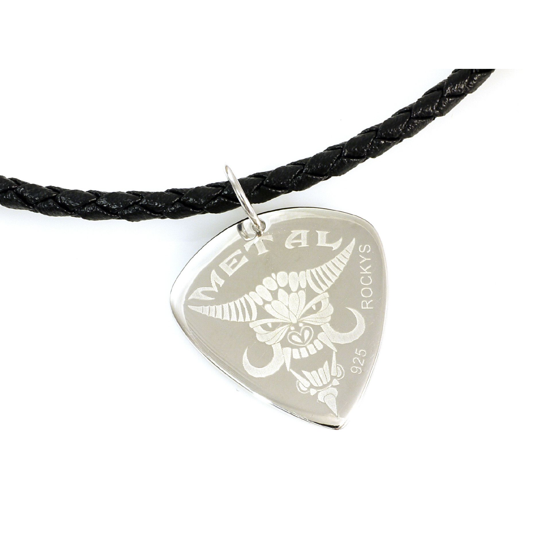 ROCKYS Silber Plektrum mit Lederkette und Silberschließe