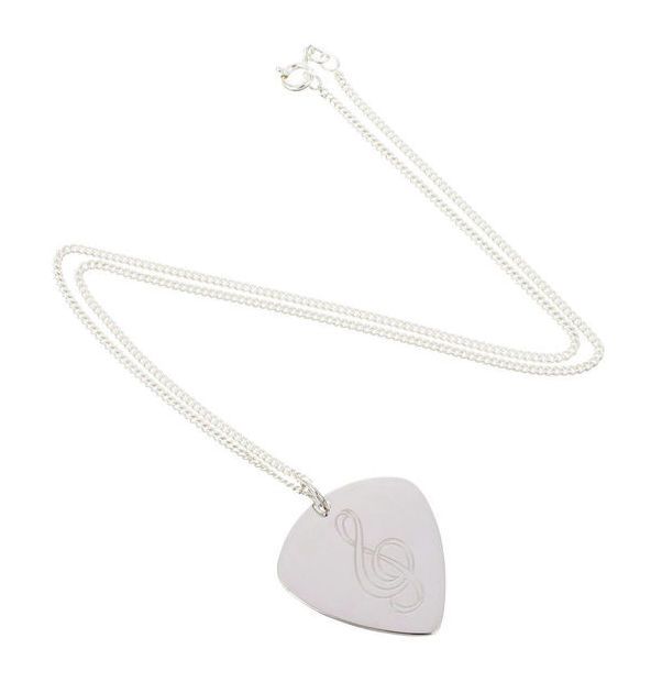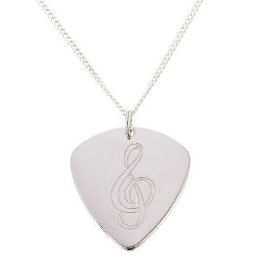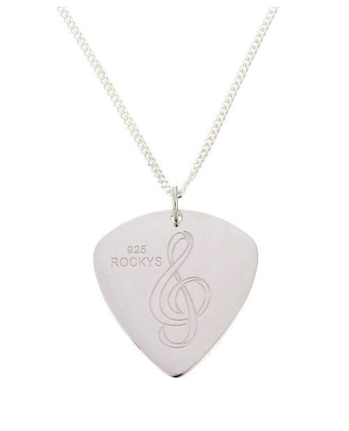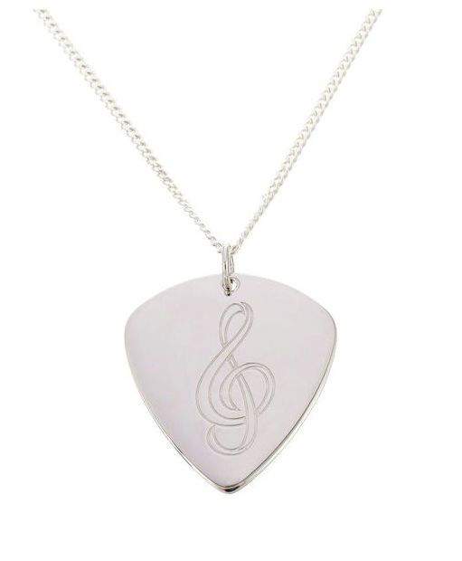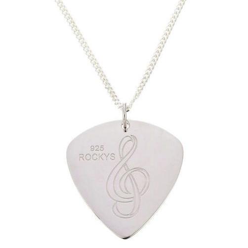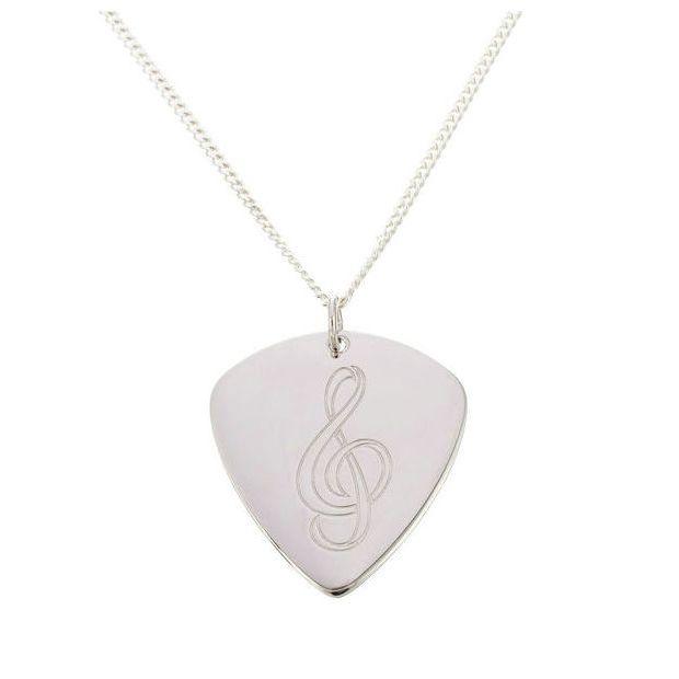 Silber Plektrum-Anhänger mit Silberkette Motiv: Violinschlüssel Motiv beidseitig gelasert mit 45 cm Panzerkette aus 925er Silber Plektrum-Größe: 29 mm x 26 mm in attraktiver Geschenkbox