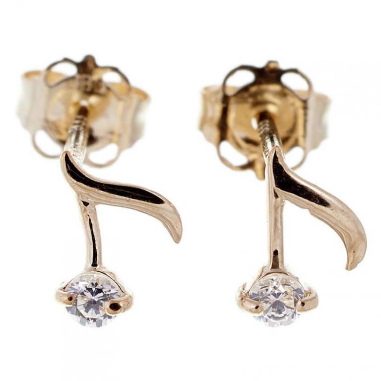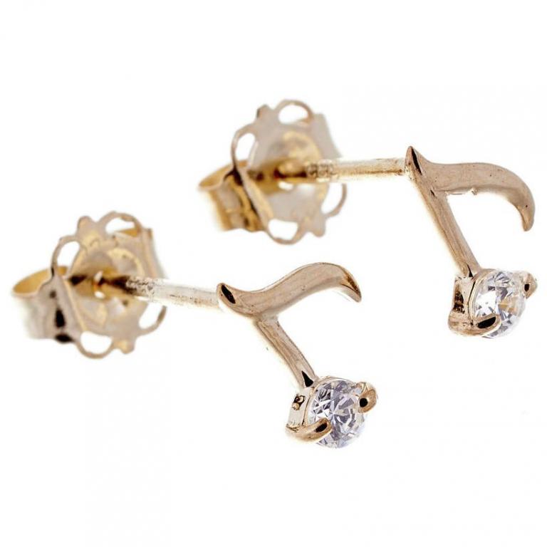 Ohrstecker Design: Achtelnote Material: 333 Gold / 8 Karat Größe: 6,6 x 5,3 mm mit Zirkonia Steinen in AAA Qualität Lieferumfang: 1 Paar