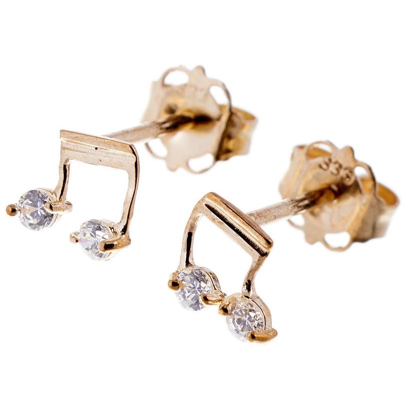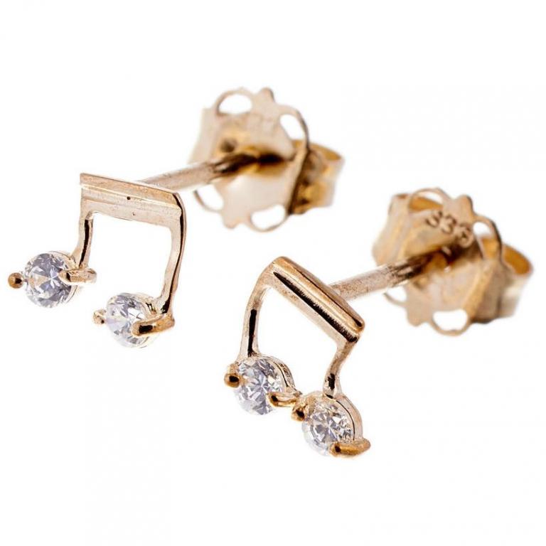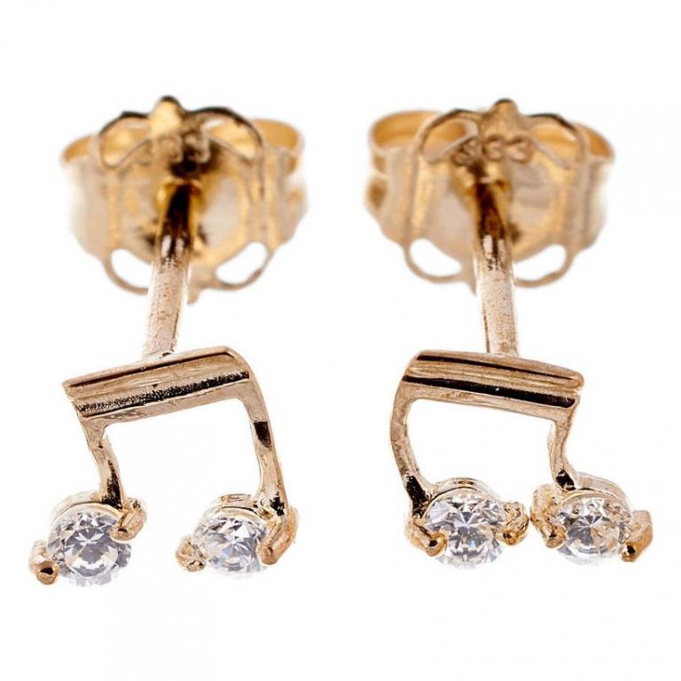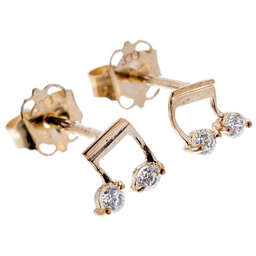 Ohrstecker Design: Noten Material: 333 Gold / 8 Karat , Größe: 5,0 x 5,6 mm mit Zirkonia Steinen in AAA Qualität, Lieferumfang: 1 Paar