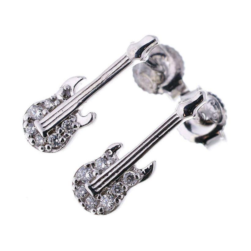 Ohrstecker Motiv: E-Gitarre Material: 925er Silber rhodiniert mit gefassten Zirkonia Steinen Größe: 14,8 x 5,1 mm in Geschenkbox Lieferumfang: 1 Paar