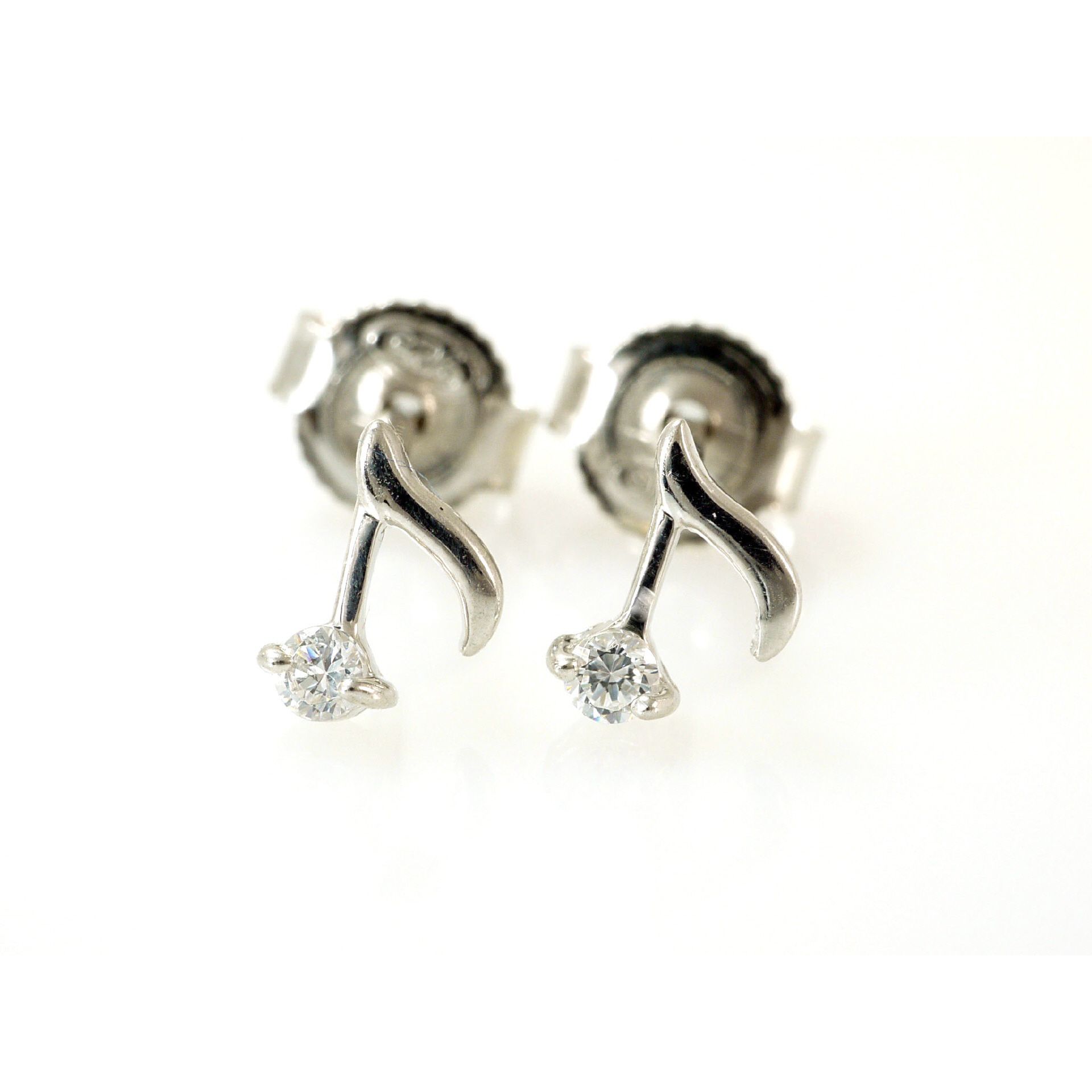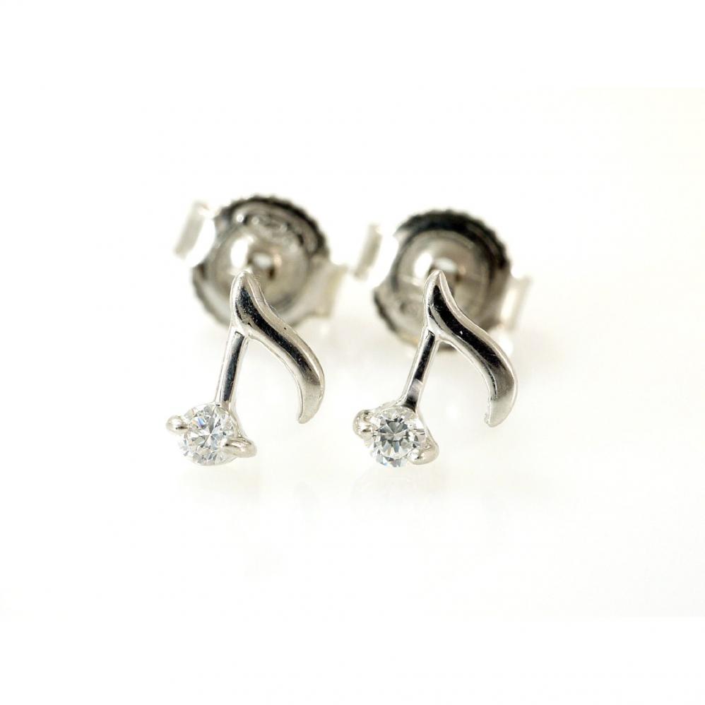 Ohrstecker Form: Achtel Note 925 Silber-rhodiniert mit gefassten Zirkonia Steinen Größe: ca. 4 x 3,5 mm mit Geschenkbox Paarpreis