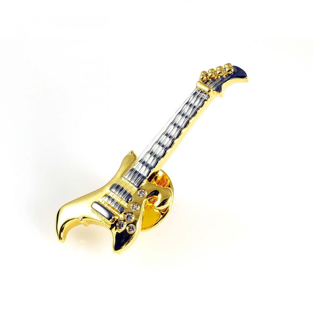 Bassgitarre Stick Pin mit Saiten , 5 Zirkonia Steine, vergoldet, Größe 40mm x 14 mm