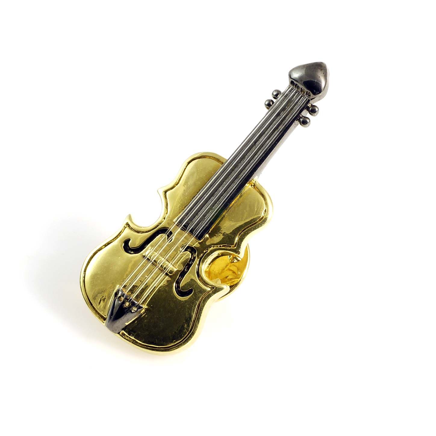 Cello Anstecker , vergoldet, mit Saiten, Stick Pin mit Sicherungsverschluß , Größe 40mm x 15 mm 1 Stück