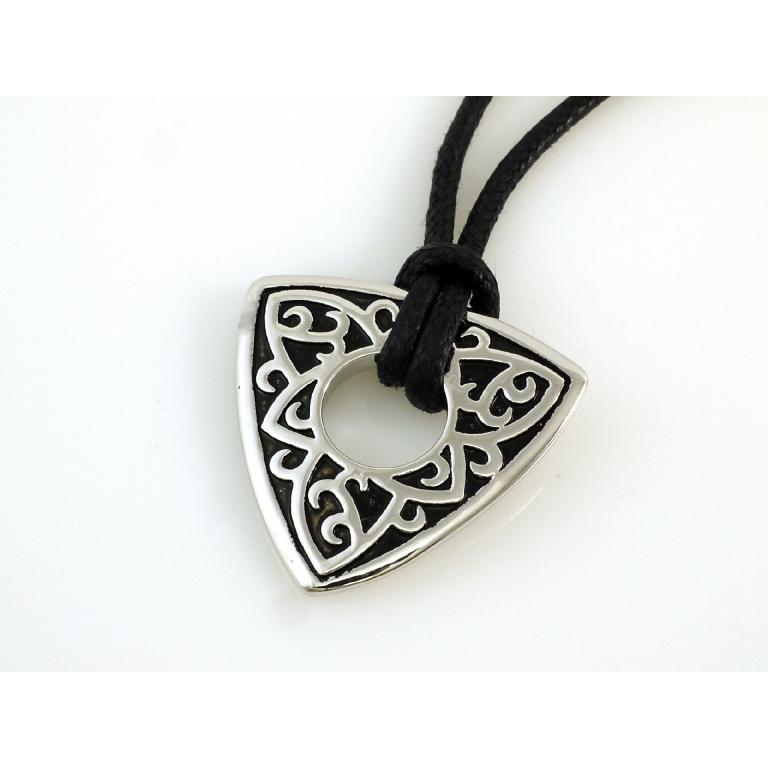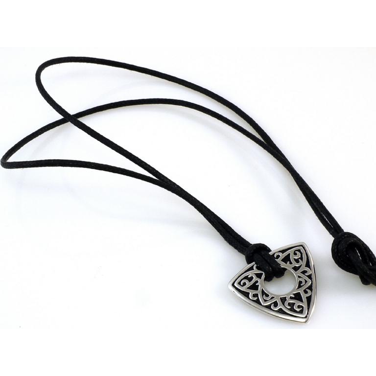 Dennis Hormes Metall Signature Plektrum - Triangle - mit Signatur gelasert - 27 mm x 27 mm mit Stoffband in 80 cm Länge