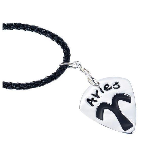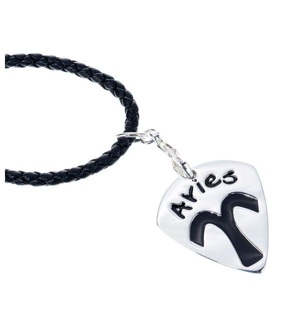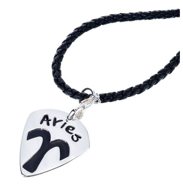 Metall Plektrum Widder mit Halskette mit schwarzer Kette in Leder Optik das Plektrum einfach aus dem Karabiner Haken herausnehmen, spielen und danach wieder einhängen, so geht das Plektrum nie wieder verloren schöne Optik geflochtene Kette in schwarzer Leder Optik 50 cm Länge extra großer Karabiner Haken klassisches 351 Form Plektrum Material: Messing, gegossen, handpoliert und versilbert mit 925 Sterling Silber Größe: ca. 30 x 26,5 mm Stärke: ca. 2,4 - 2,7 mm Gewicht: ca. 9 g Farbe im Motiv: Epoxylack, schwarz Widder 21.03. - 20.04.
