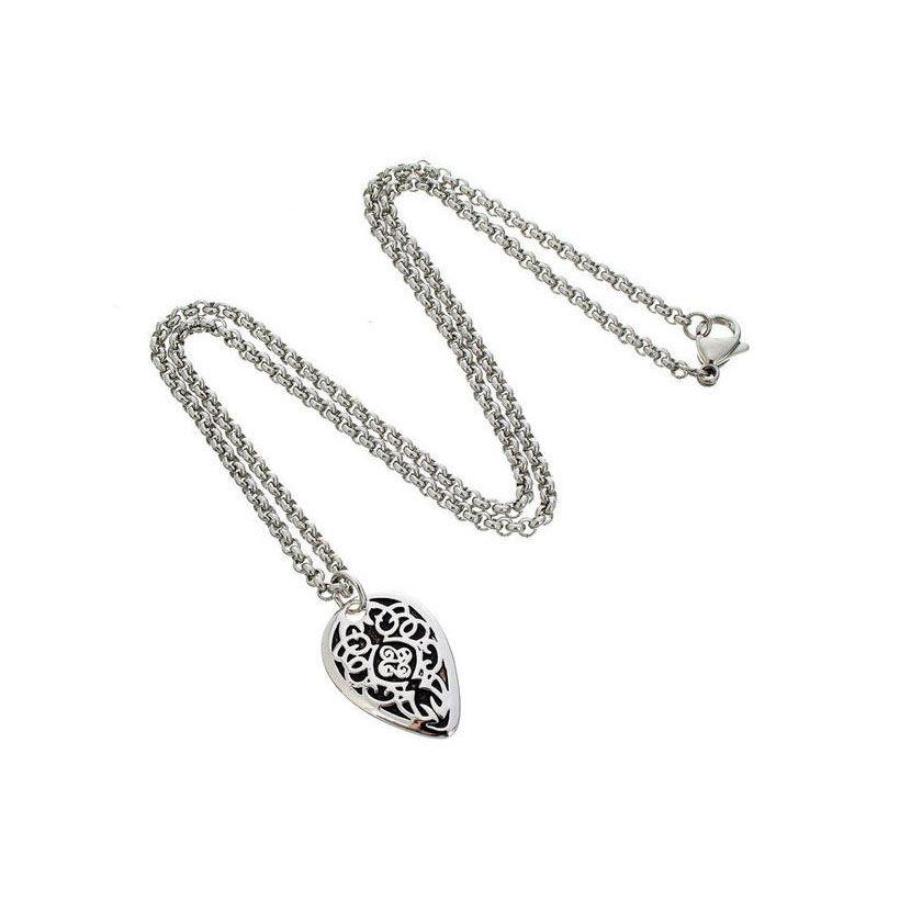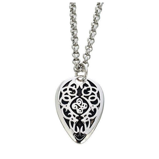 Plektrum-Anhänger mit Edelstahlkette Größe des Plektrums: ca. 25 x 17,8 mm mit beidseitigem Tribal-Design Edelstahl-Erbskette mit 3 mm Stärke und 50 cm Länge