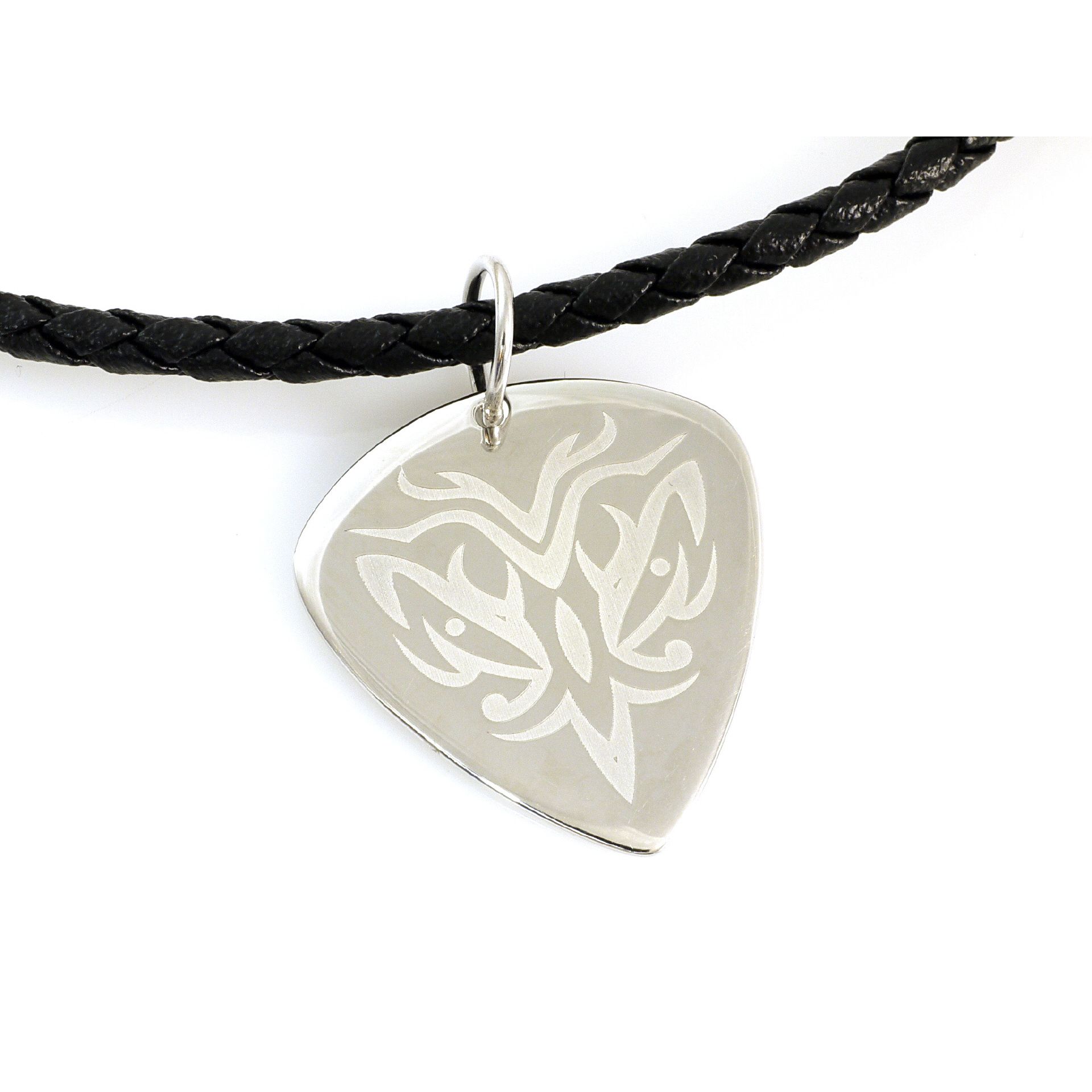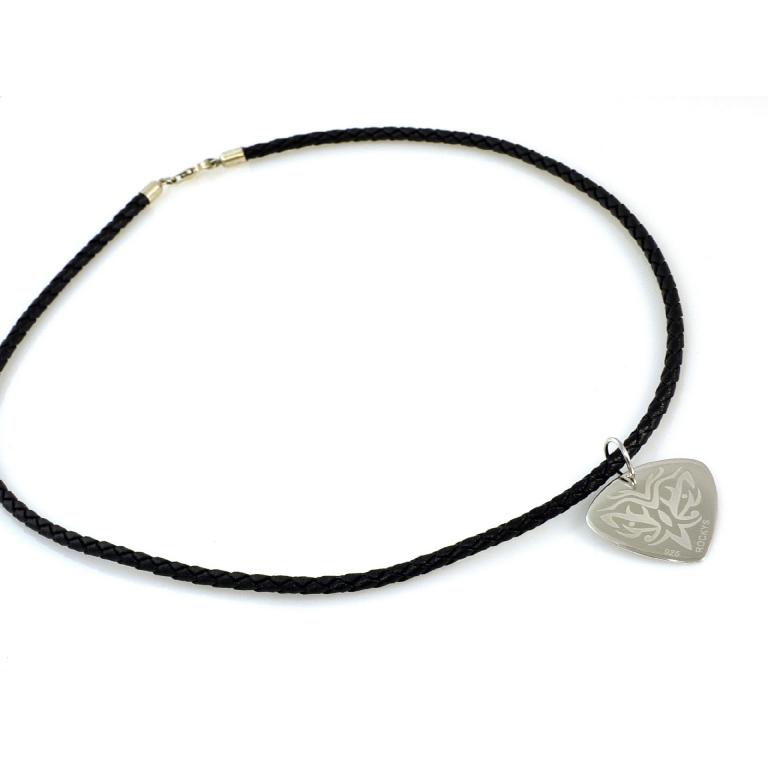 Silber Plektrum mit Lederkette