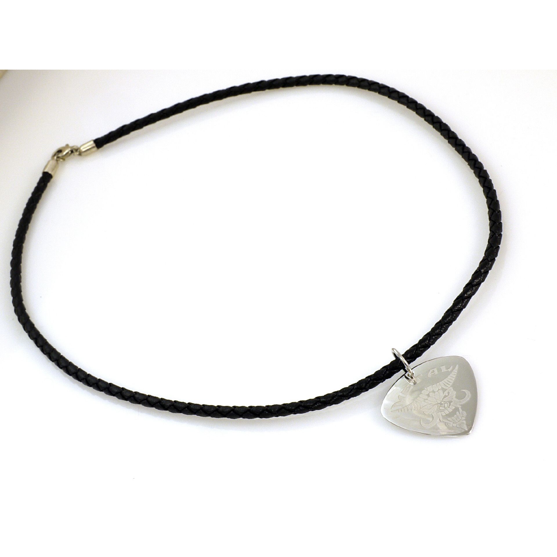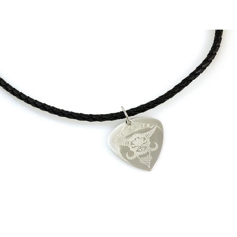 ROCKYS Silber Plektrum mit Lederkette und Silberschließe