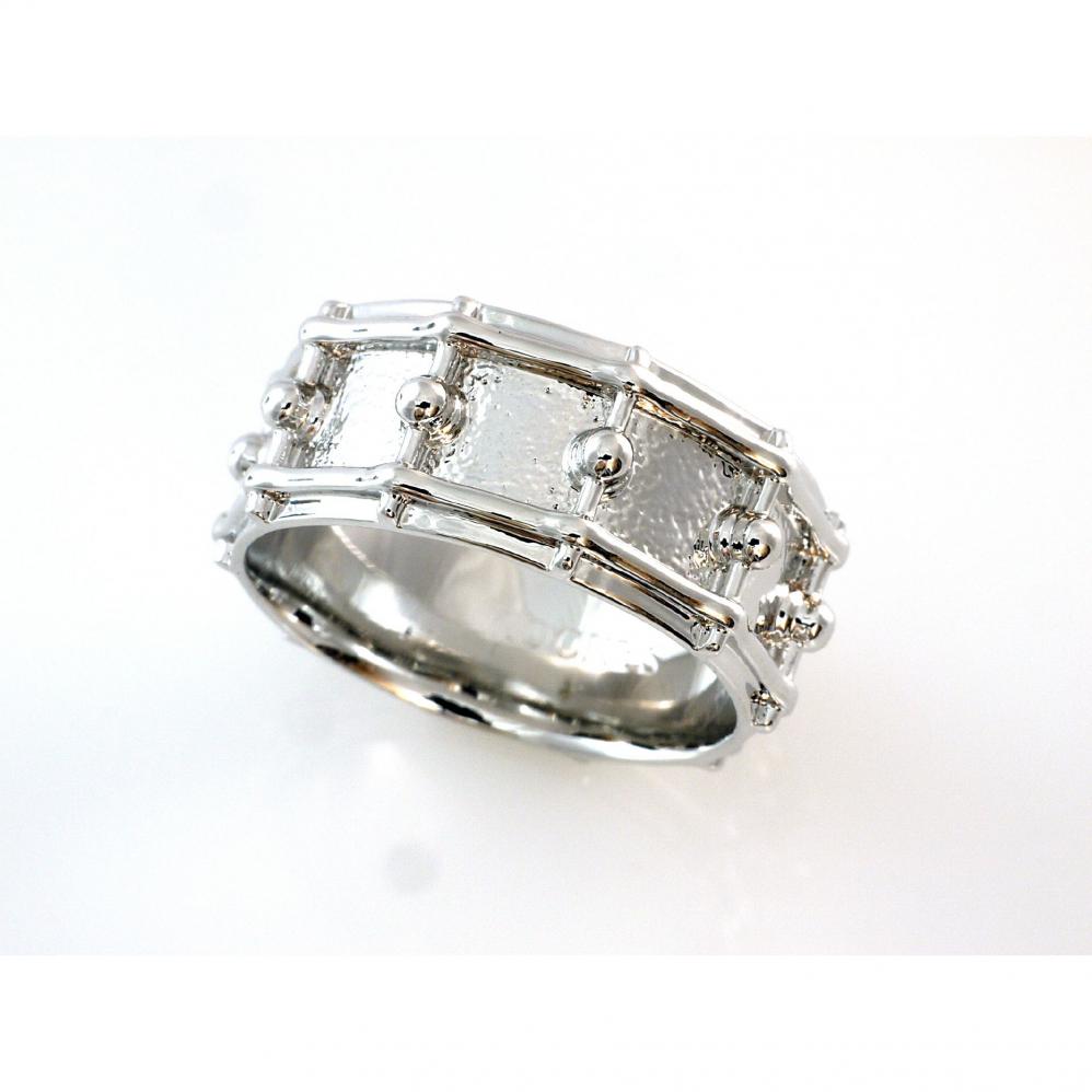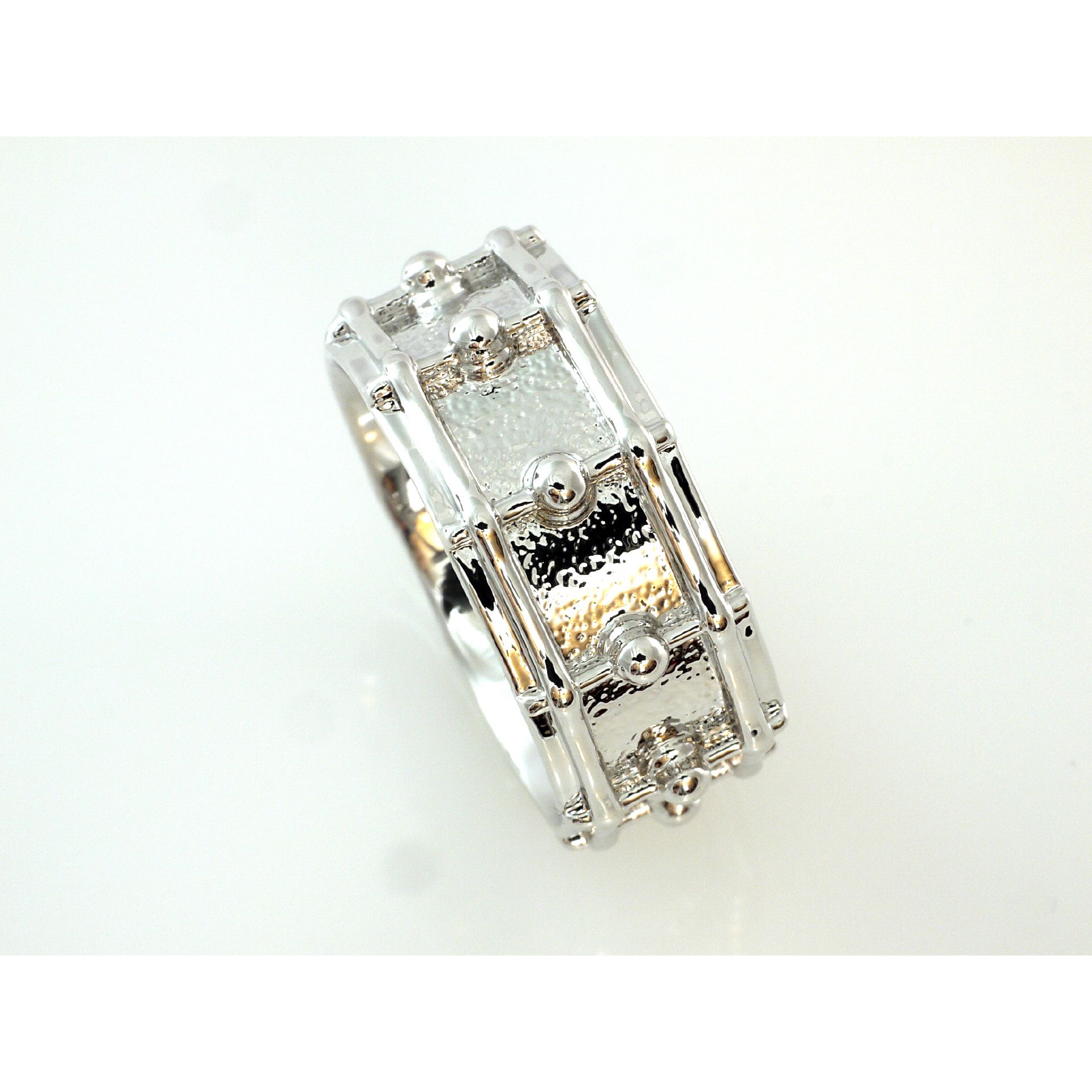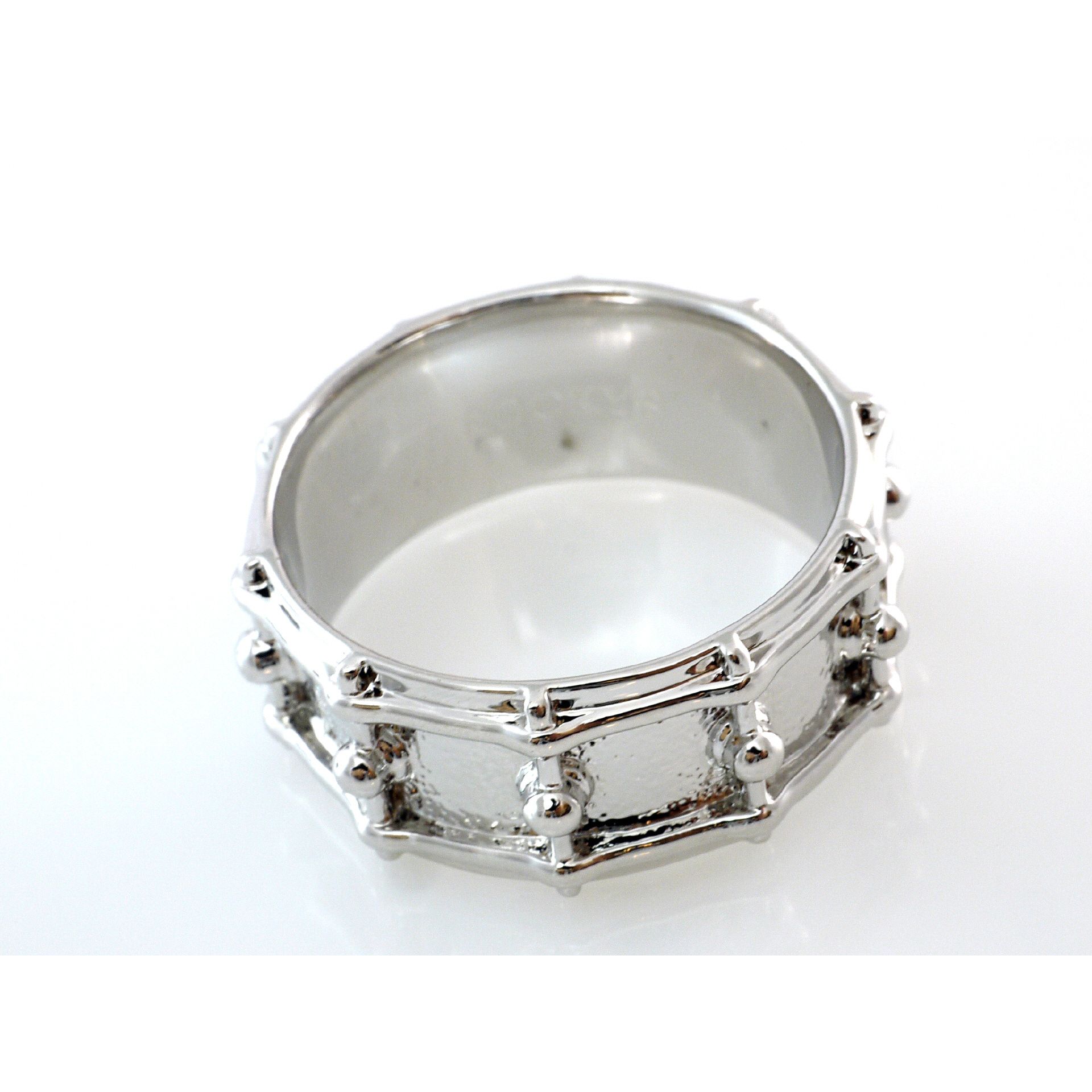 Snare Drum Ring ganz umlaufendes Motiv Material Messing rhodiniert innen bombiert (abgerundet) für angenehmen Tragekomfort mit Geschenkbox