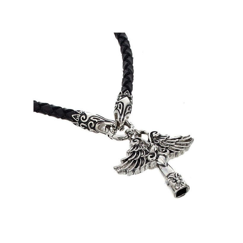 Drums Schmuck-Stimmschlüssel Schmuck und Werkzeug zugleich Stimmschlüssel für Schlagzeug mit 70 cm langem, geflochtenen Lederband Material: 6 mm dickes, schwarzes Leder Endkappen sind Drachenköpfe aus Edelstahl mit Edelstahlring zum Einhängen des Drumschlüssels der Ring lässt sich nach innen öffnen beidseitiges Design Material: Gussmetall Größe des Anhängers: ca. 50 x 50 mm