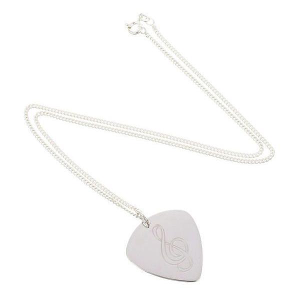 Silber Plektrum-Anhänger mit Silberkette Motiv: Violinschlüssel Motiv beidseitig gelasert mit 45 cm Panzerkette aus 925er Silber Plektrum-Größe: 29 mm x 26 mm in attraktiver Geschenkbox