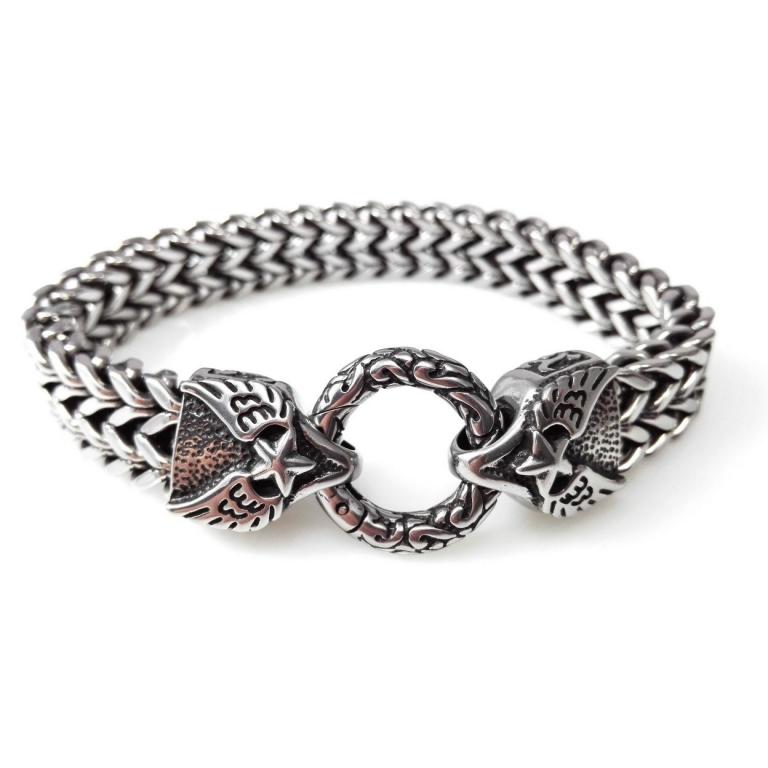 Breites Armband aus Edelstahl, doppelreihig aus massivem Edelstahl, mit großem Verschlußring , läßt sich leicht nach innen öffnen, Länge 22cm, Breite 15,8 mm, l