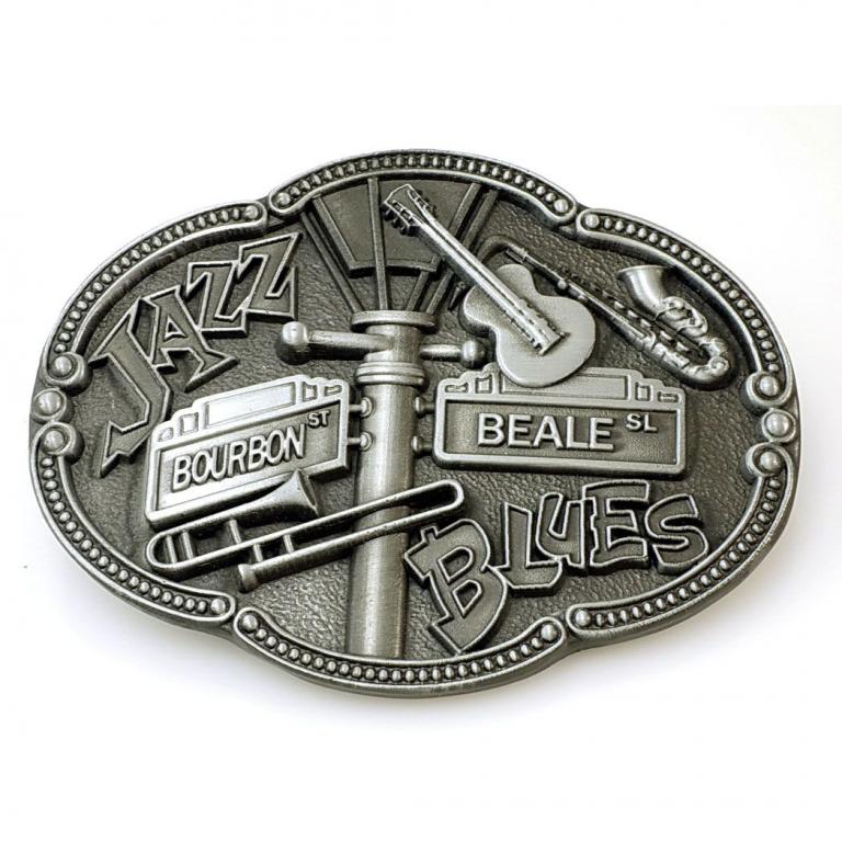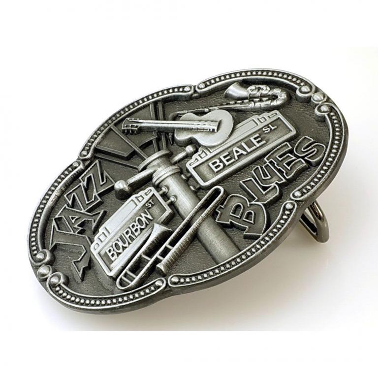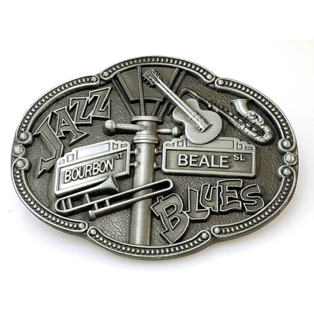 Gürtelschnalle Jazz -Blues - Bourbon St., Hartmetallguss, Größe der Schließe 88 mm x 68 mm, für Gürtel bis 40mm Breite