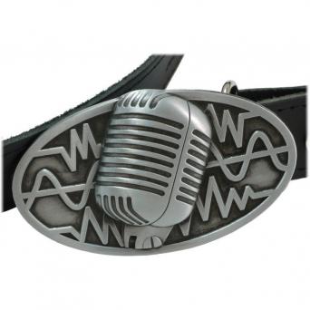 Ledergürtel schwarz mit Mikrofon Schnalle...