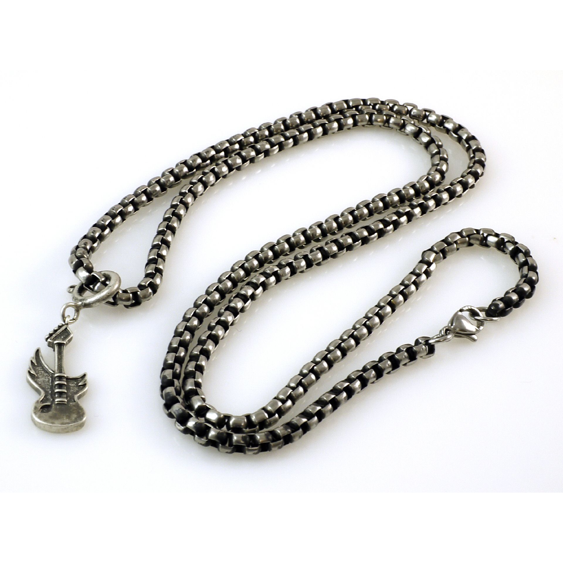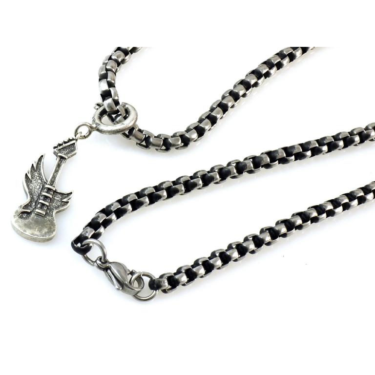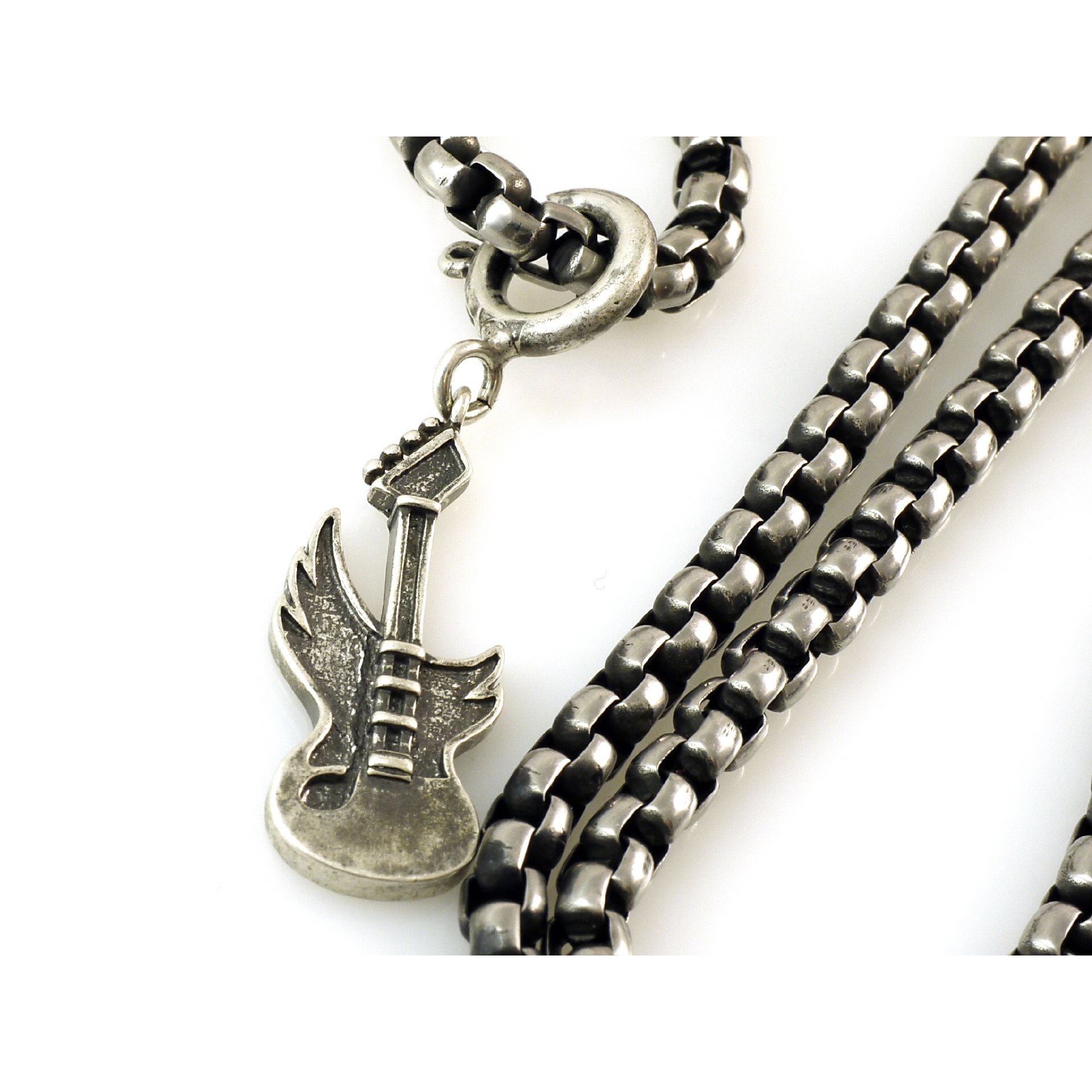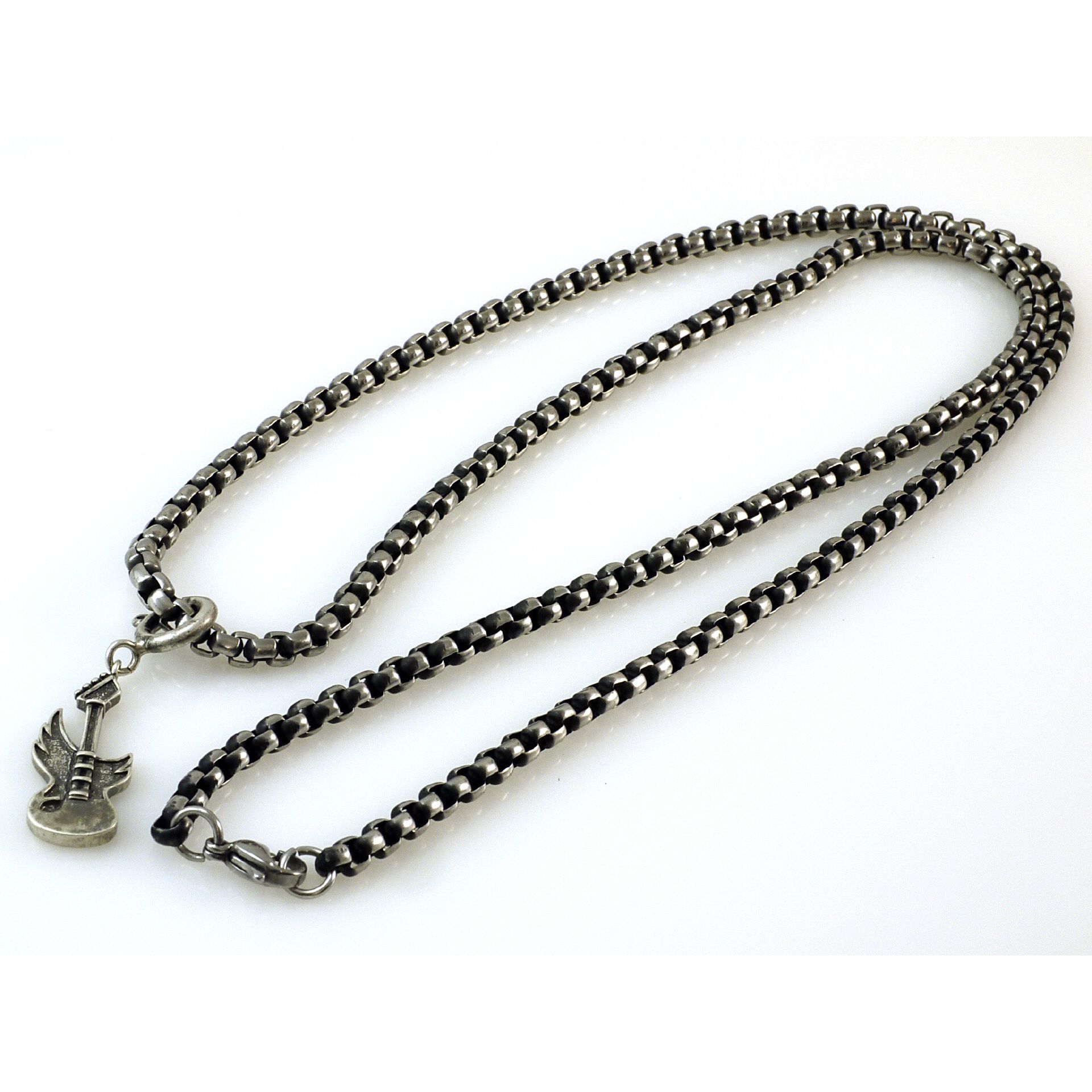 Jen Majura Gitarren Silber Anhänger , Antik look , mit Signatur Jen auf der Rückseite Silber Anhänger Grösse 40mm Länge 10 mm Breite, mit Edelstahlkette im Antik look 4mm Stärke und 50 cm Länge