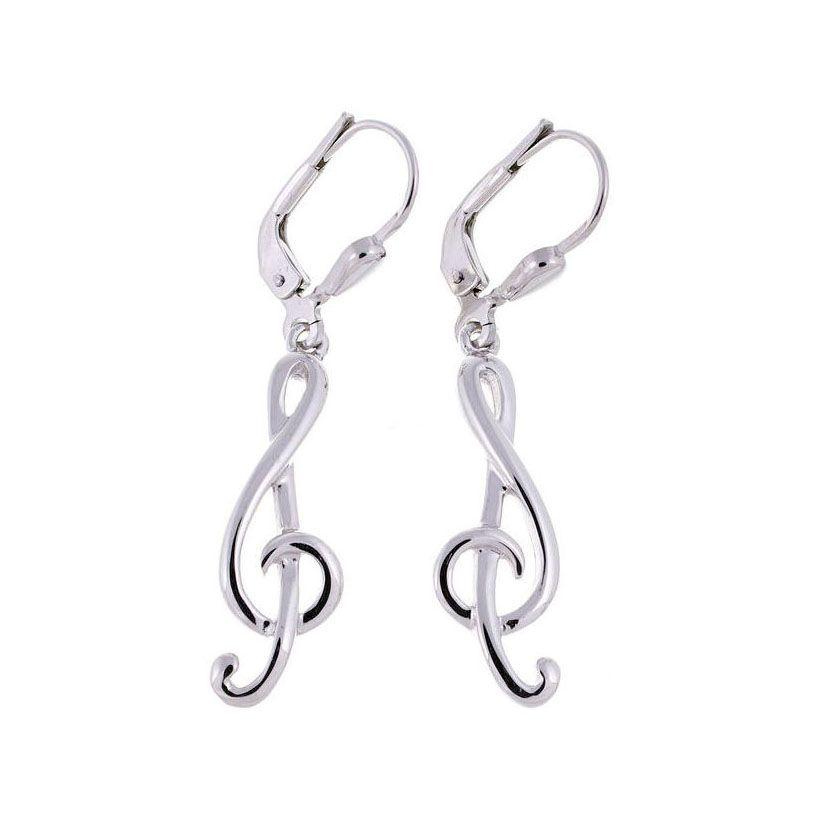 Ohrringe Design: Violinschlüssel Material: 925 Sterling Silber massiv rhodiniert (hochwertiger Anlaufschutz) Größe (L x B): ca 38 x 7,9 mm mit hochwertiger Brisur inkl. Geschenkbox Lieferumfang: 1 Paar