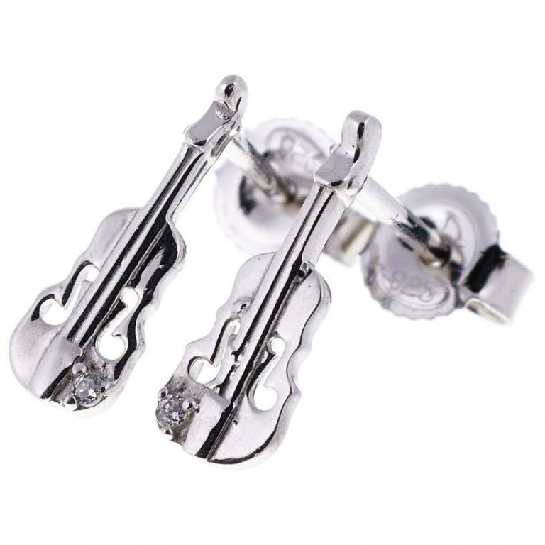 Stud Earrings Violin Silver